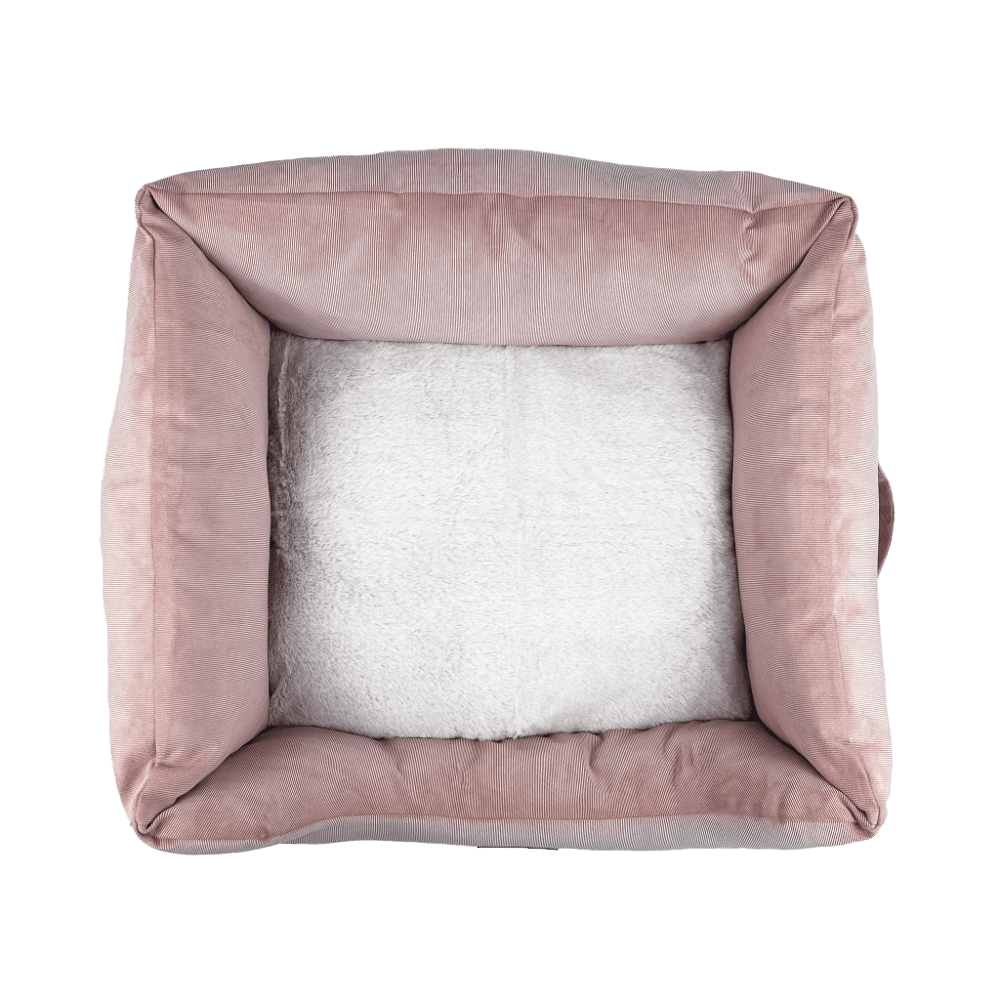 - A plush pink faux fur inner cushion offers a warm and cozy surface for your pet to rest on throughout the day