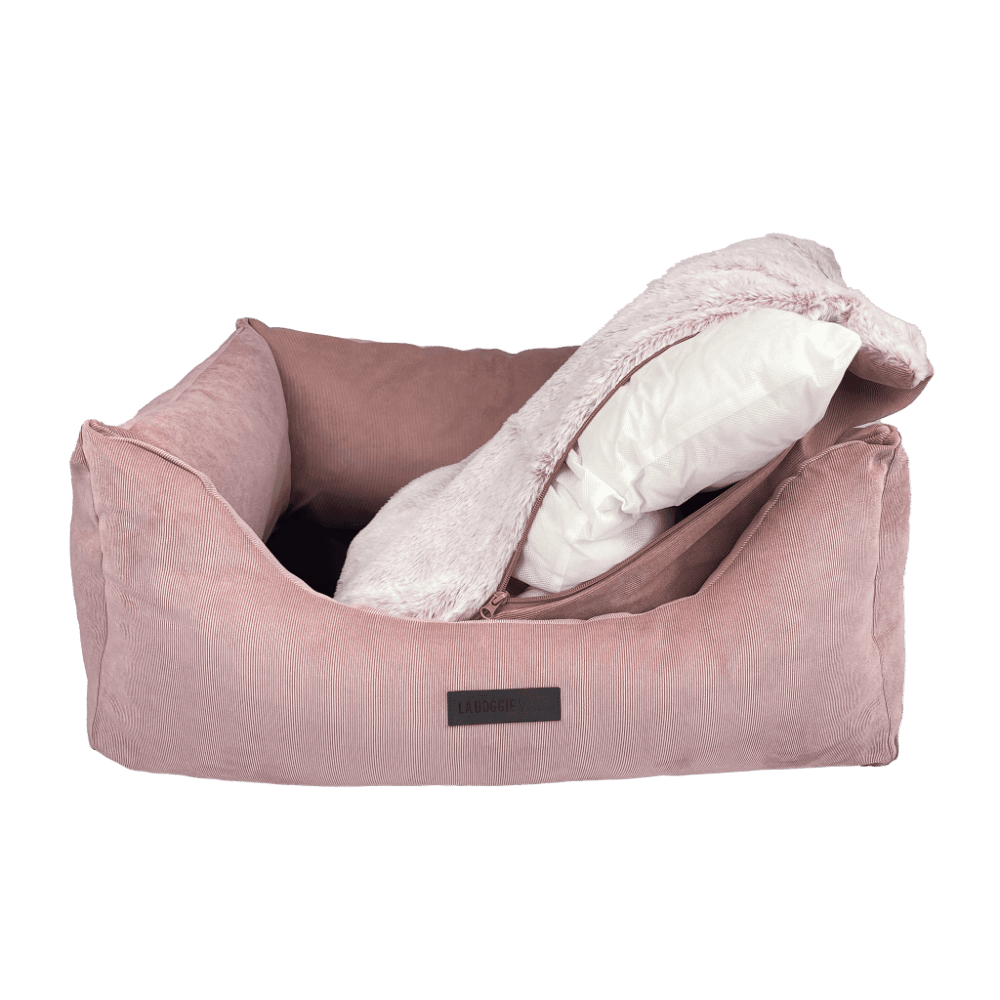 La Doggie Vita Low Front Pink Micro Corduroy Bolster With Removable Parts Dog Bed