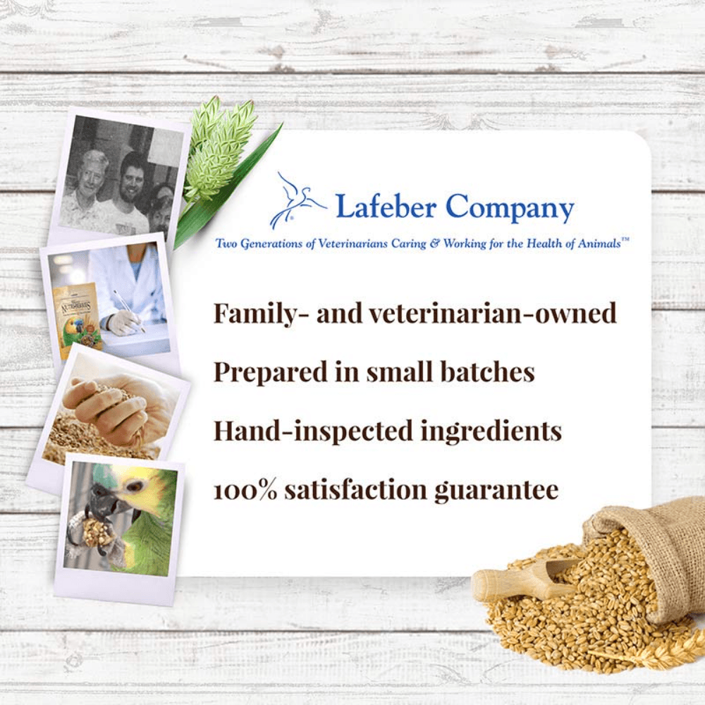 The Lafeber Parrot Classic Nutri Berries Bird Treats offer balanced nutrition in a fun-to-eat format with whole seeds, grains and real fruit. The berry shape promotes foot and beak health