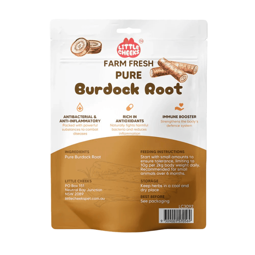 Give your small pets a little taste of the wild with Farm Fresh Pure Burdock Root. This wholesome, natural treat is perfect for guinea pigs, rabbits, and other small critters who love to nibble, chew, and explore. Rich in nutrients and flavour, it's a foraging favourite that adds a dash of variety to their day. Sprinkle it into their hay, mix it with pellets, or hide it in a forage box to spark their natural foraging instincts. It's enrichment made easy - keeping them active, curious, and happily snuffling around for every last piece