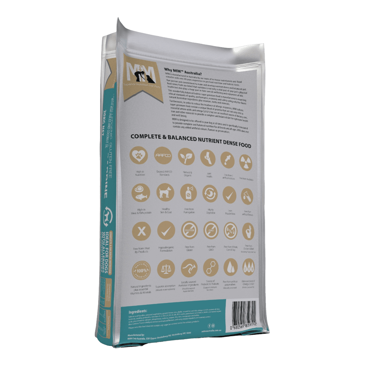 Meals For Mutts Salmon and Sardine All Lifestages Dry Dog Food is an Australian-made, holistic diet formulated with high levels of omega fatty acids to support dogs of all breeds and ages. This hypoallergenic recipe uses salmon and sardine as primary protein sources to provide essential DHA and EPA for brain function and cardiovascular health while remaining free from common allergens like gluten and dairy.