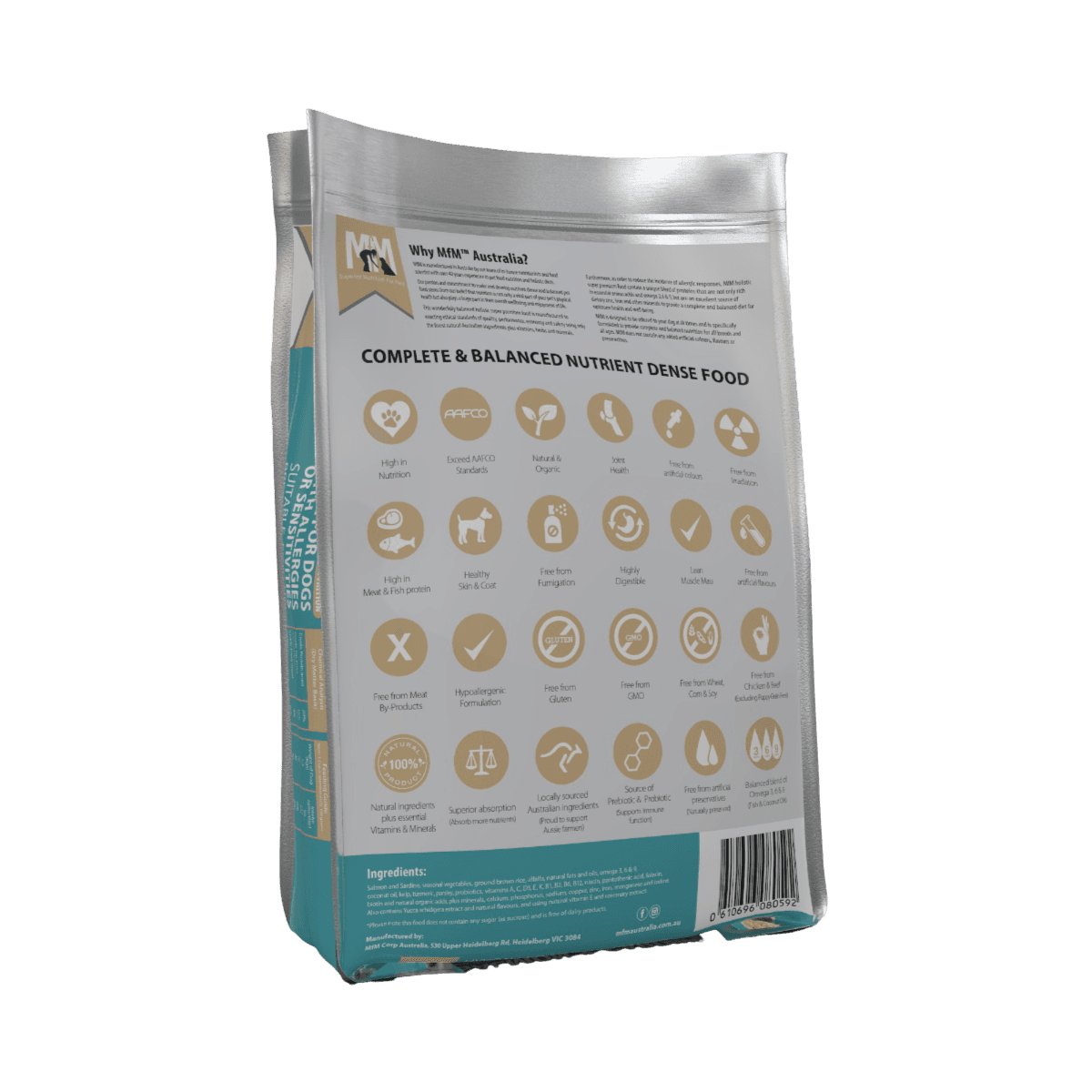 Meals For Mutts Salmon and Sardine All Lifestages Dry Dog Food is an Australian-made, holistic diet formulated with high levels of omega fatty acids to support dogs of all breeds and ages. This hypoallergenic recipe uses salmon and sardine as primary protein sources to provide essential DHA and EPA for brain function and cardiovascular health while remaining free from common allergens like gluten and dairy.