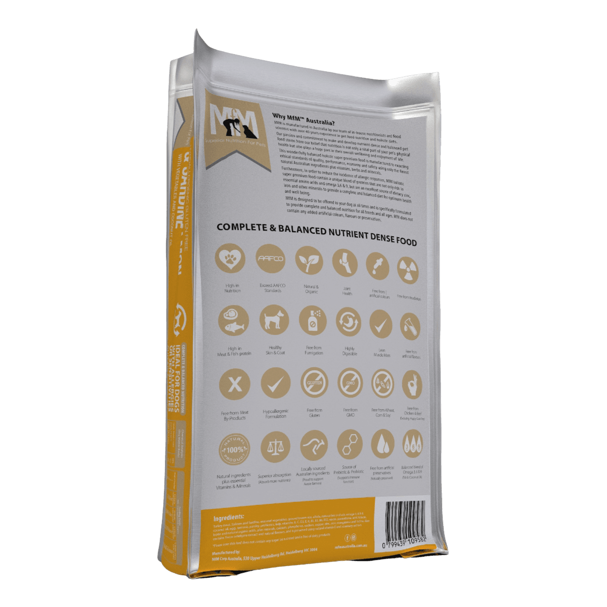 Meals For Mutts Turkey, Salmon & Sardine Puppy Dry Dog Food is an Australian-made, nutrient-dense diet specifically formulated to support the rapid growth and developmental needs of puppies and whelping mothers. This hypoallergenic formula features a blend of turkey, salmon, and sardine to provide essential bioactive peptides and omega fatty acids for cognitive development and immune strength without using common allergens like corn or wheat.