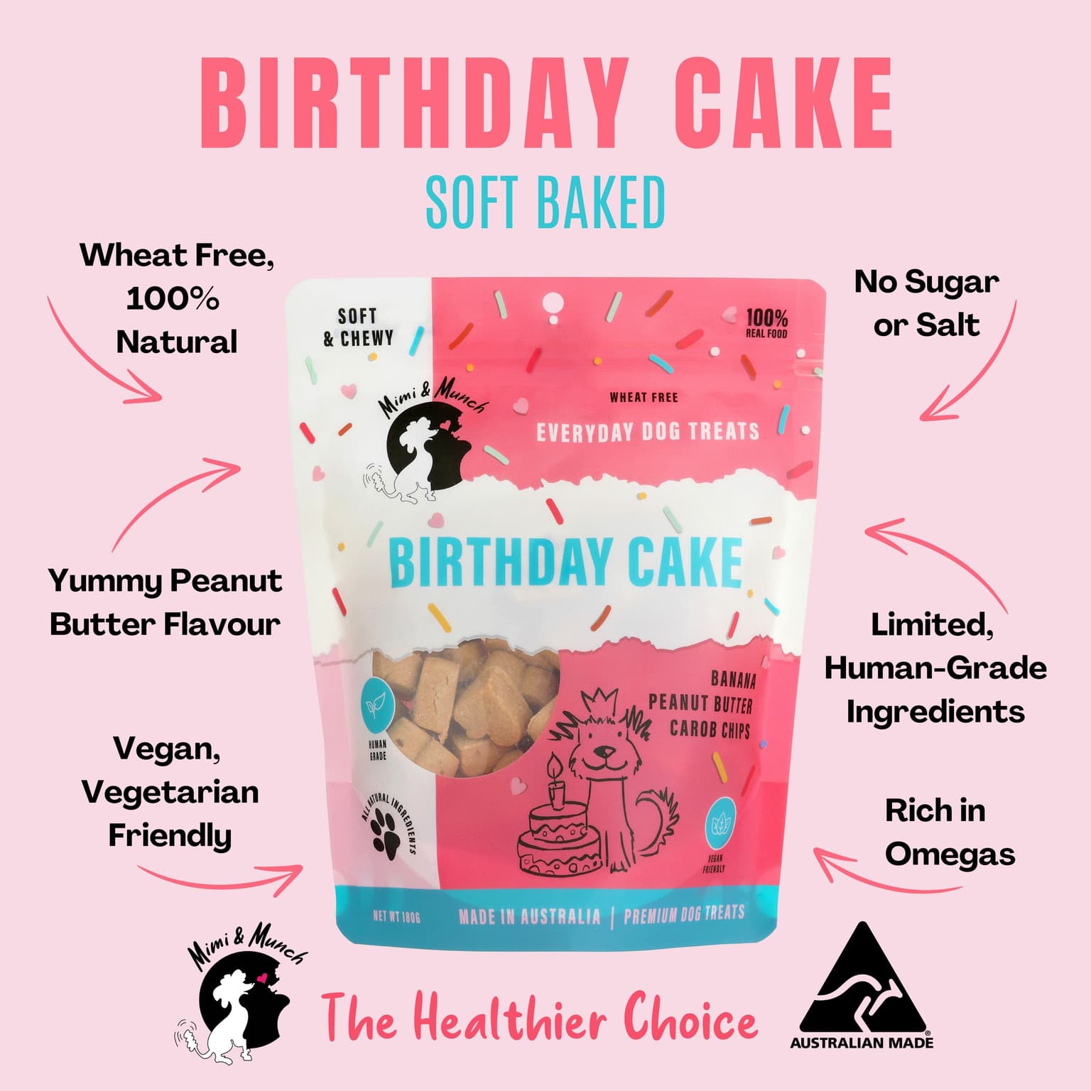 Mimi And Munch Soft Baked Wheat Free Natural Birthday Cake Dog Treats