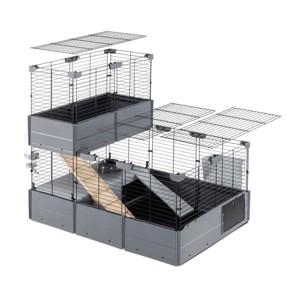 Offer spacious, customisable living with the Ferplast Multipla Double Cage Home Small Animal Extendable Modular Habitat. Reflecting Ferplast's commitment to innovative Italian design and eco-sustainability, this large, multi-level habitat uses recycled materials and adapts to your pets' needs.
