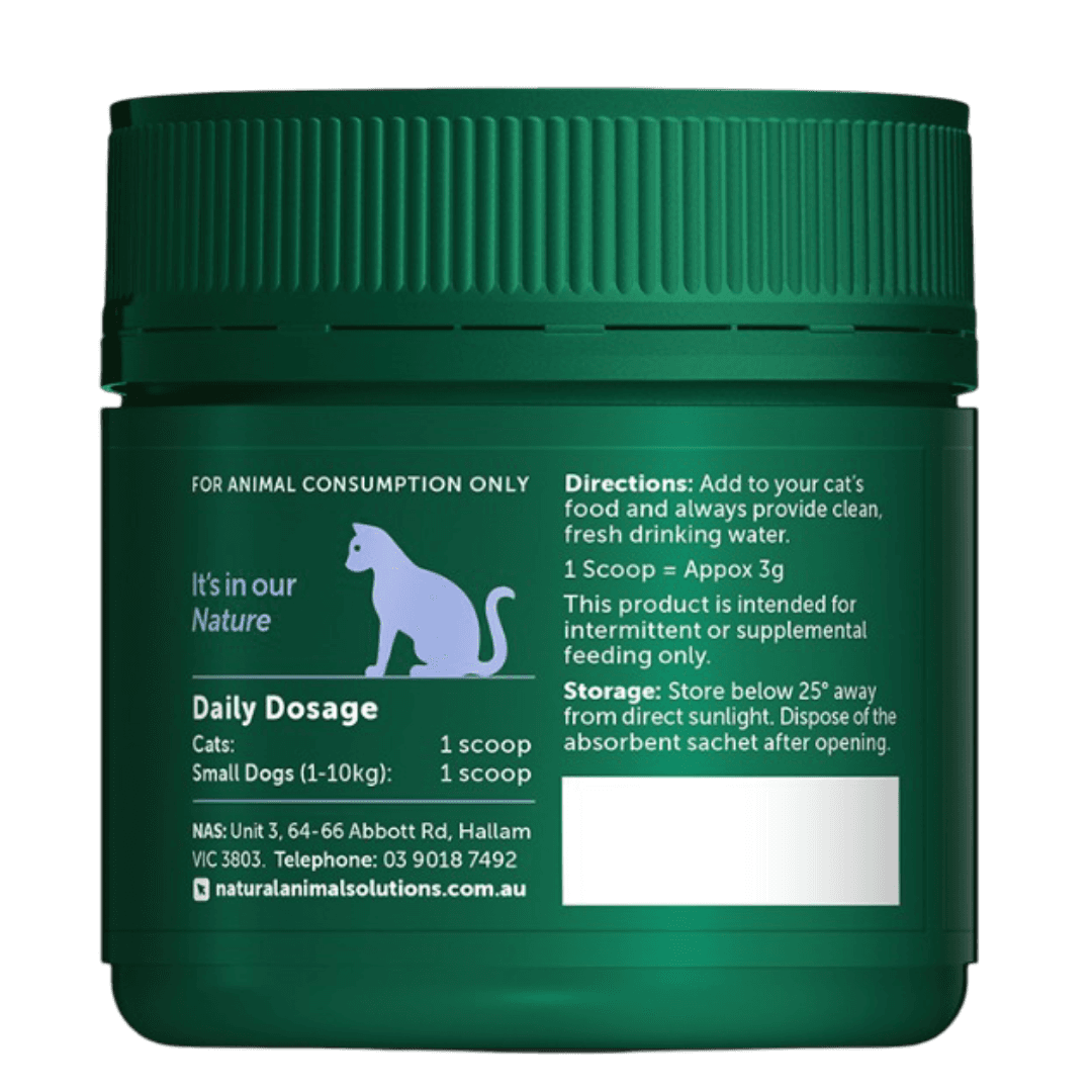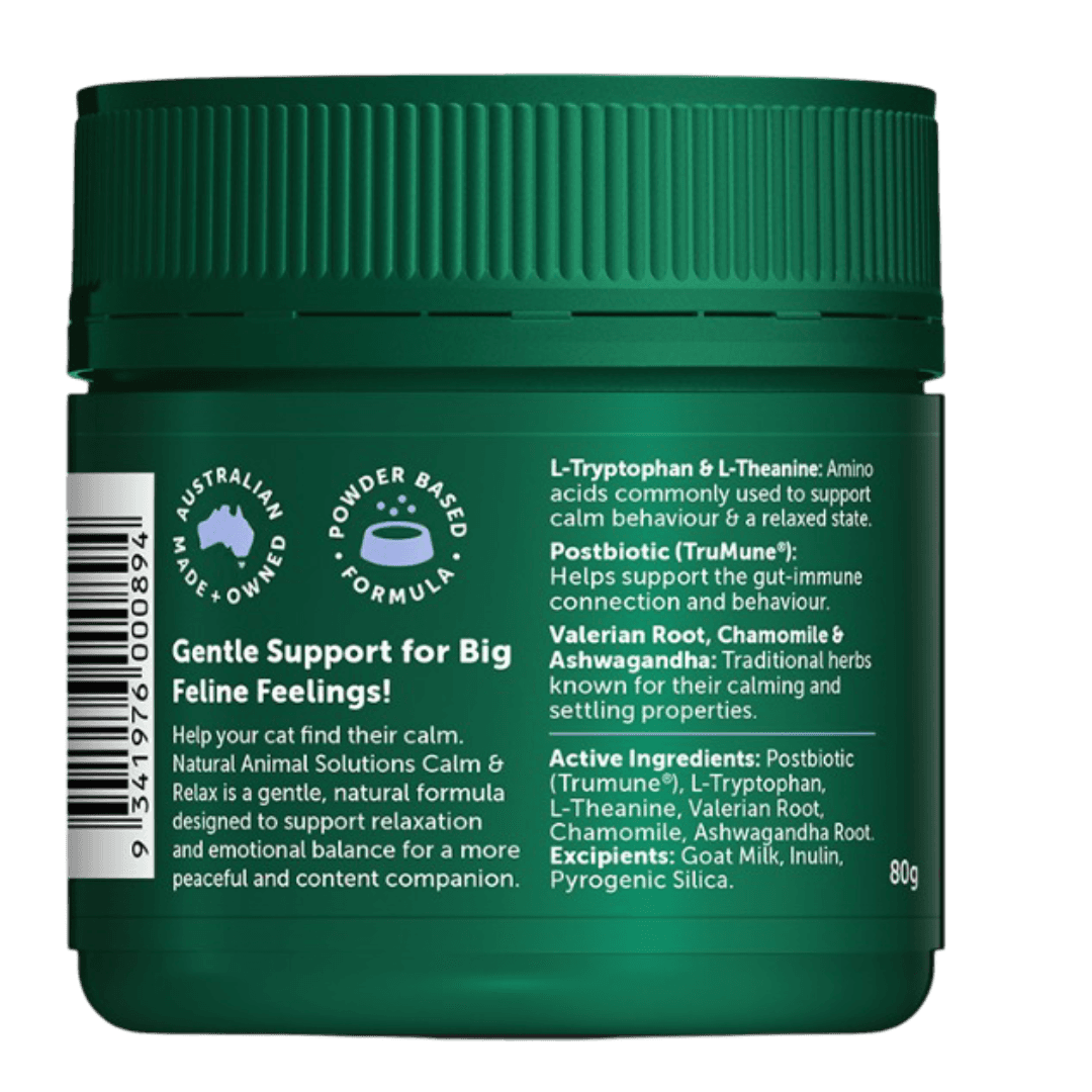 The Natural Animal Solutions Calm And Relax Cat Formula is a gentle, natural supplement formulated to support relaxation and emotional balance in felines. It provides a blend of amino acids, traditional herbs, and digestive aids to help your cat feel more peaceful and content, especially during stressful situations.