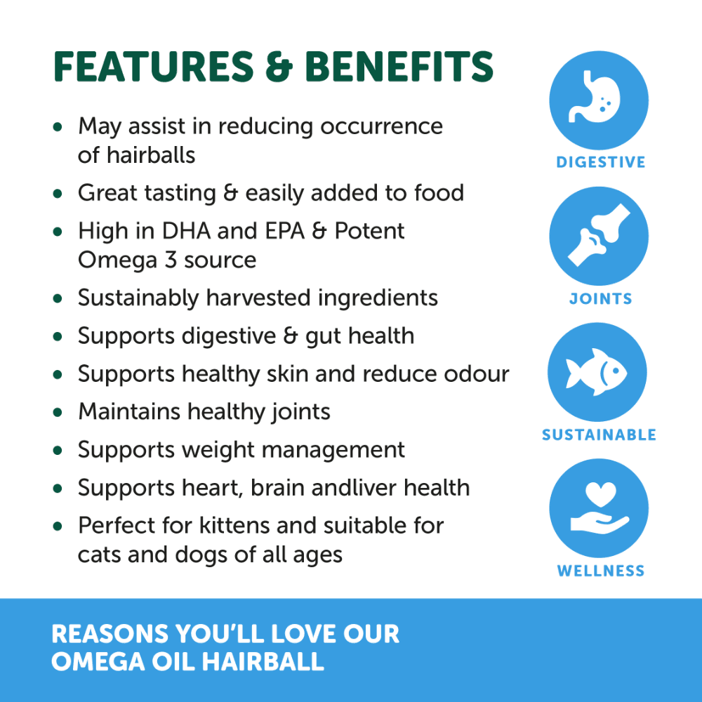 Natural Animal Solutions Omega Oil Hairball Support For Cats