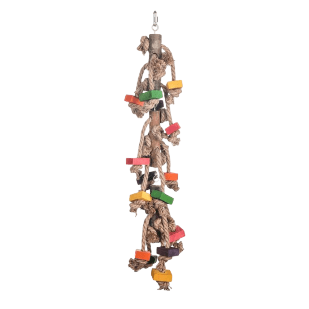 - Knotted hemp rope construction for hours of safe chewing and climbing