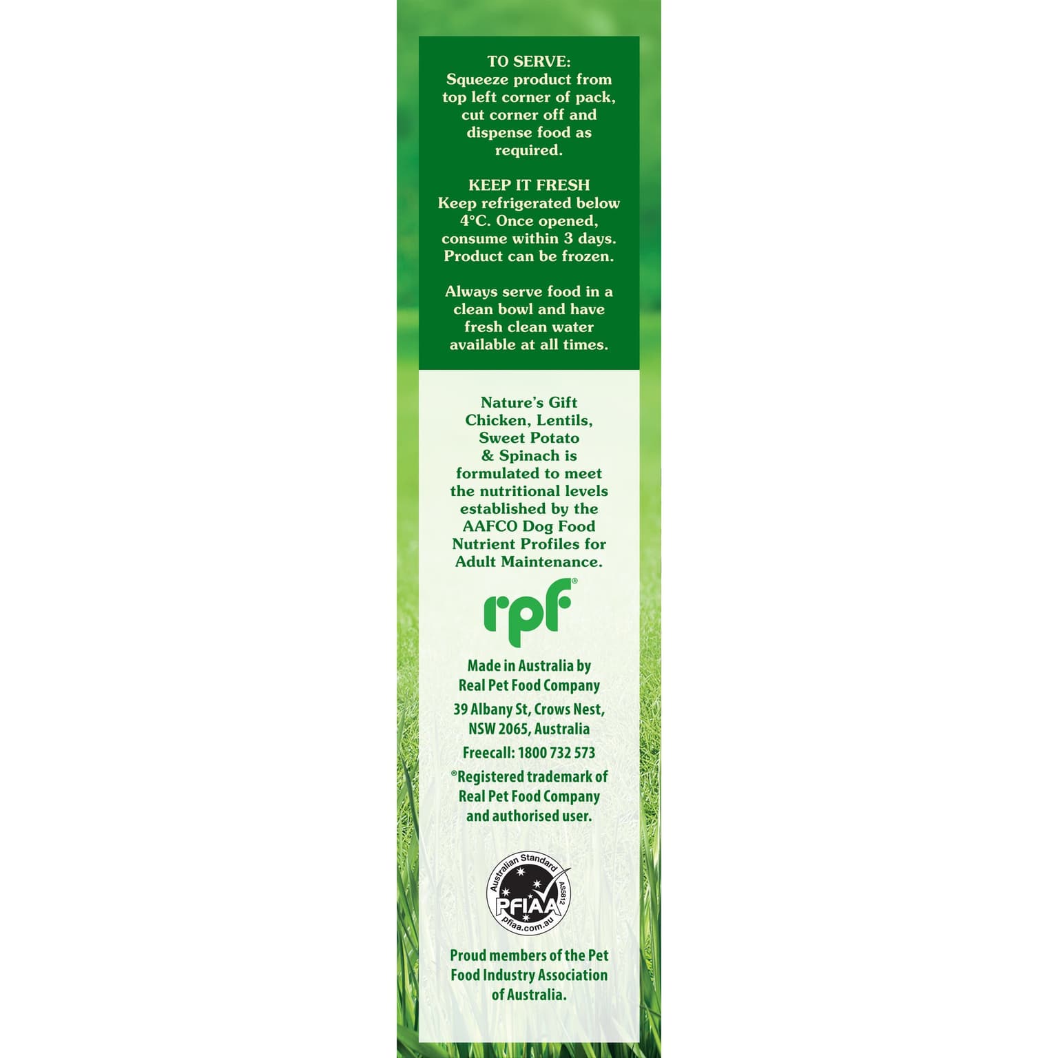 Natures Gift Slow Cooked Chicken Lentils Sweet Potato Spinach Chilled Dog Food