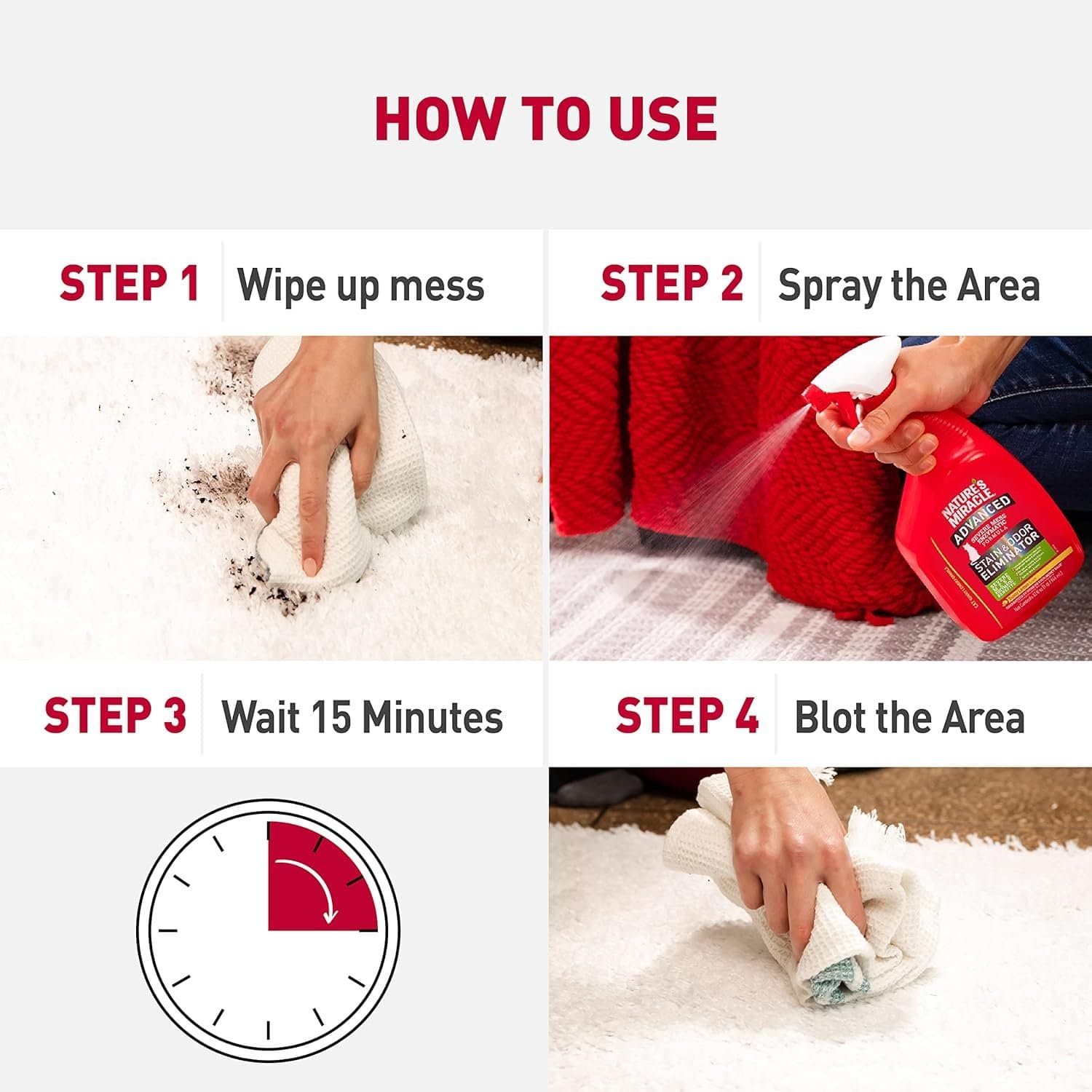 - Employs bio-enzymatic cleaning technology to thoroughly eliminate stains and odors at the molecular level