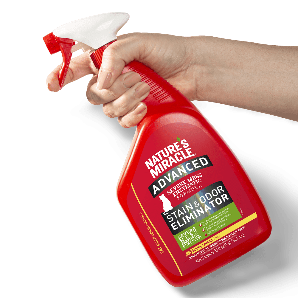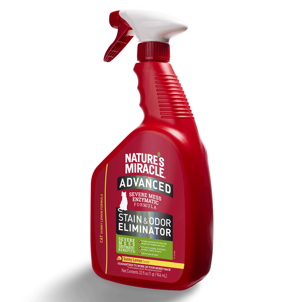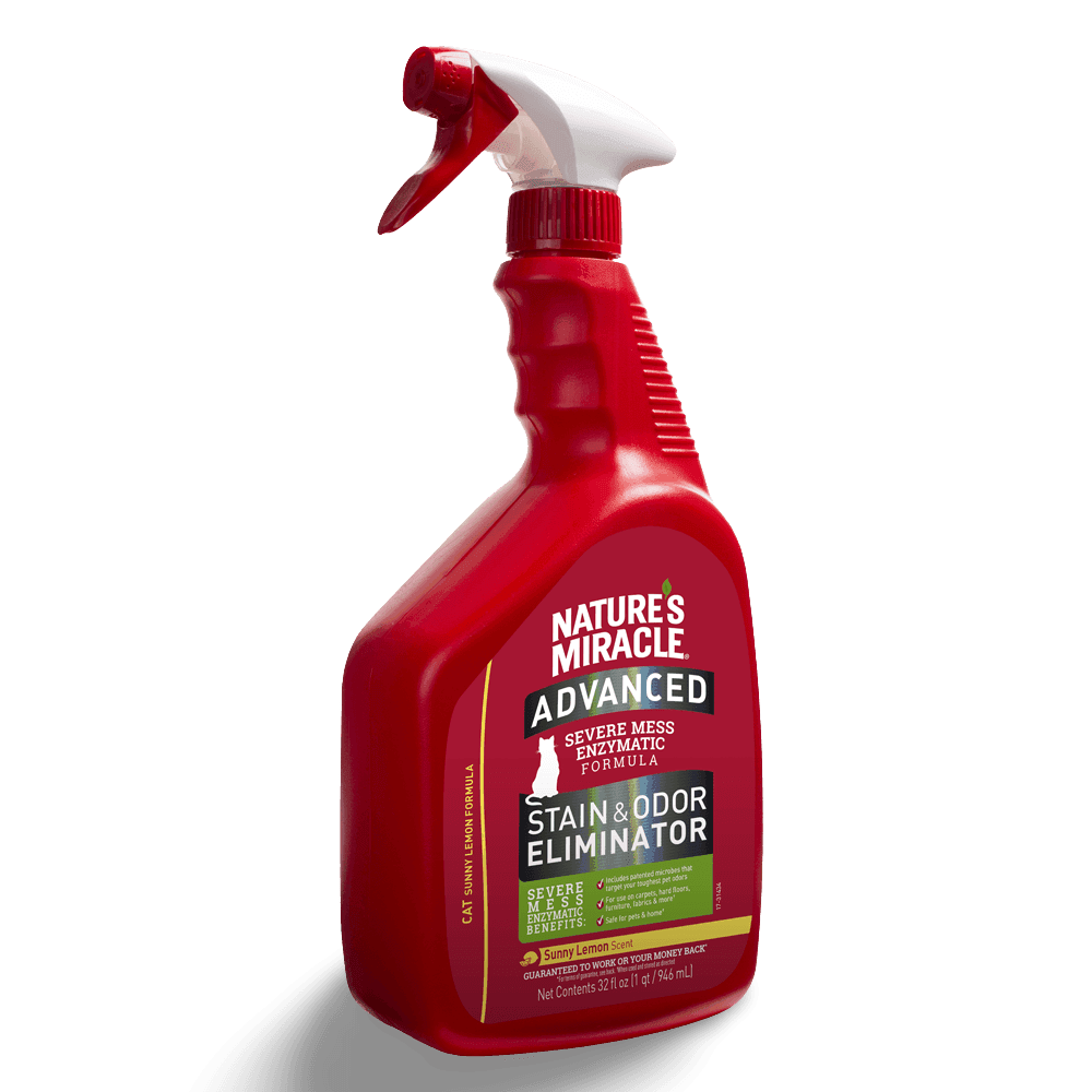 Tackle tough cat messes with Natures Miracle Advanced Formula Cat Stain And Odour Eliminator Sunny Lemon. From a trusted leader in pet cleanup, its powerful bio-enzymatic formula permanently removes stains & odours, leaving a fresh Sunny Lemon scent. Safe when used as directed.