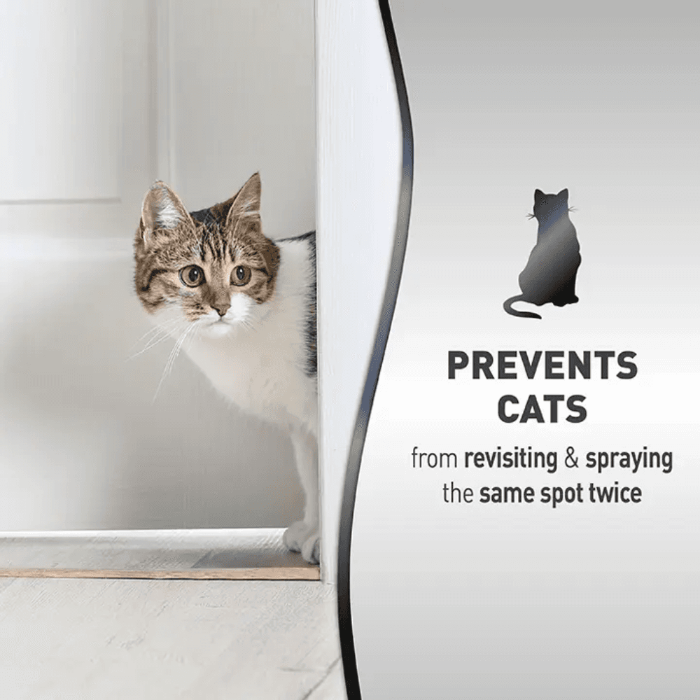 - It acts as a powerful deterrent that discourages pets from returning to previously marked areas on carpets, furniture, and hard surfaces