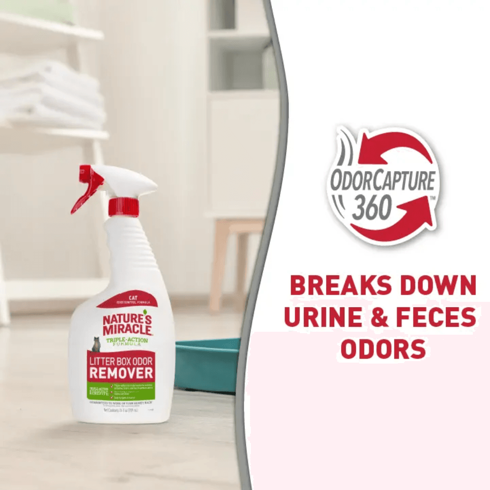 - This breakthrough formula reacts chemically with embedded litter box odours to destroy them instantly on contact