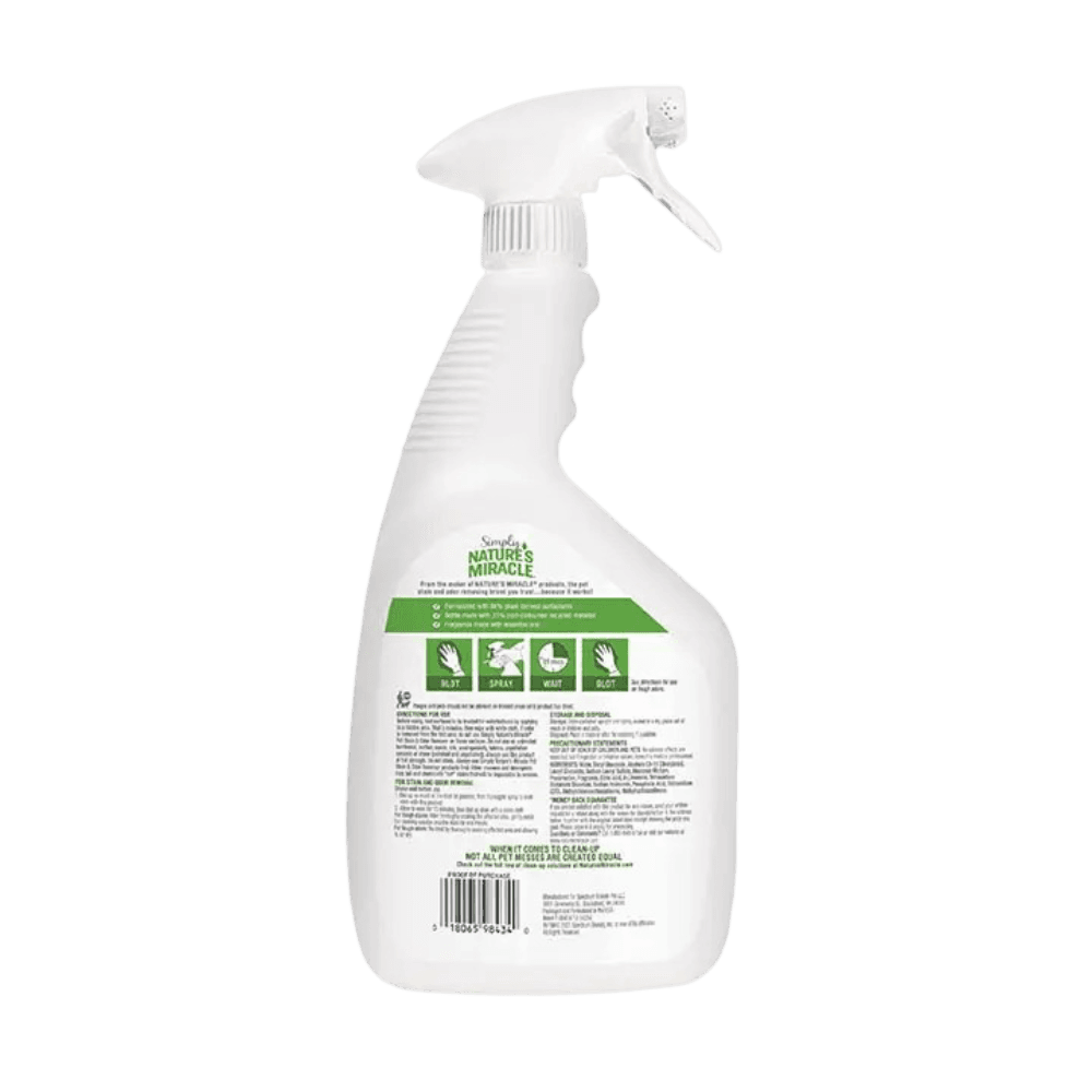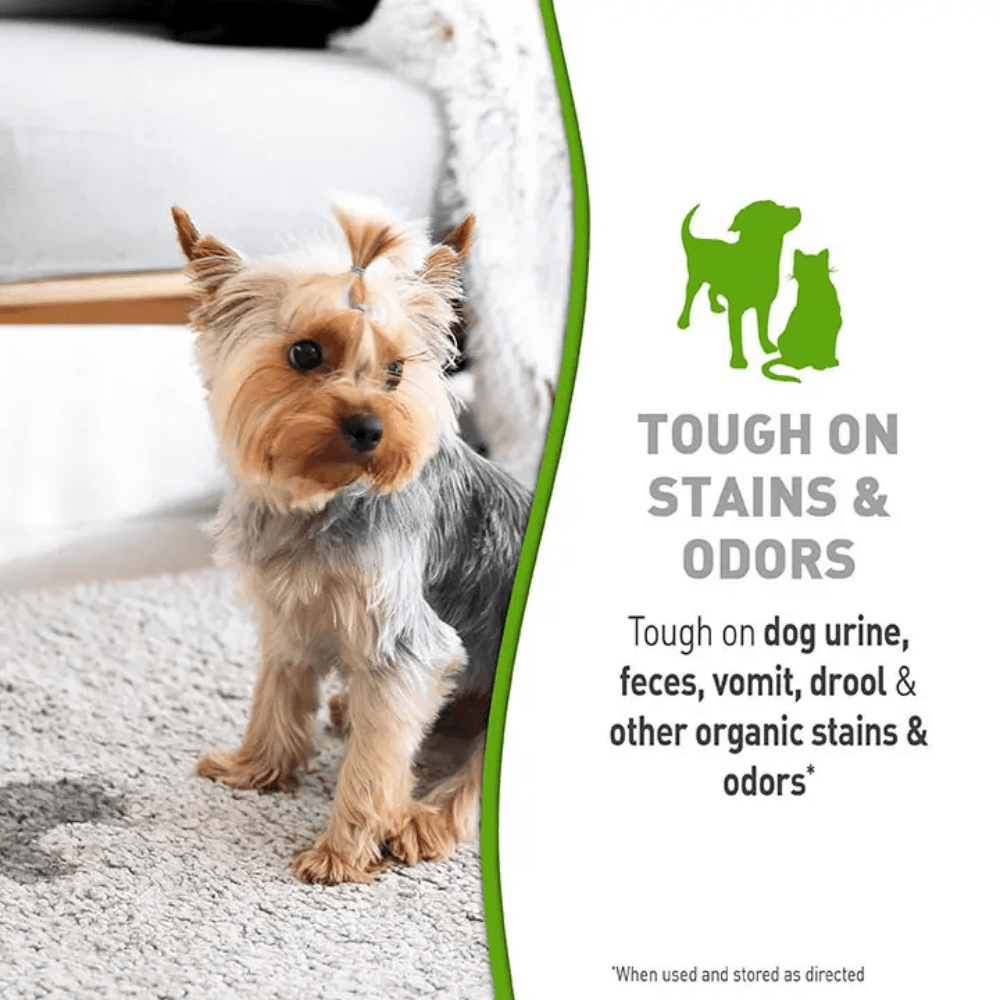 - Helps prevent re-soiling by removing the pheromones that attract pets back to the same spot