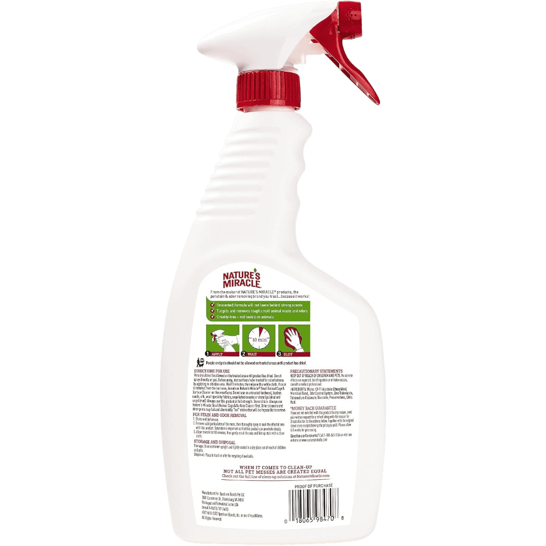 Nature's Miracle Small Animal Cage Cleaner uses trusted enzymatic technology to safely break down tough messes. From a leader in pet odour control solutions, it cleans thoroughly without leaving strong scents, ensuring a fresh and hygienic habitat ideal for sensitive small animals.
