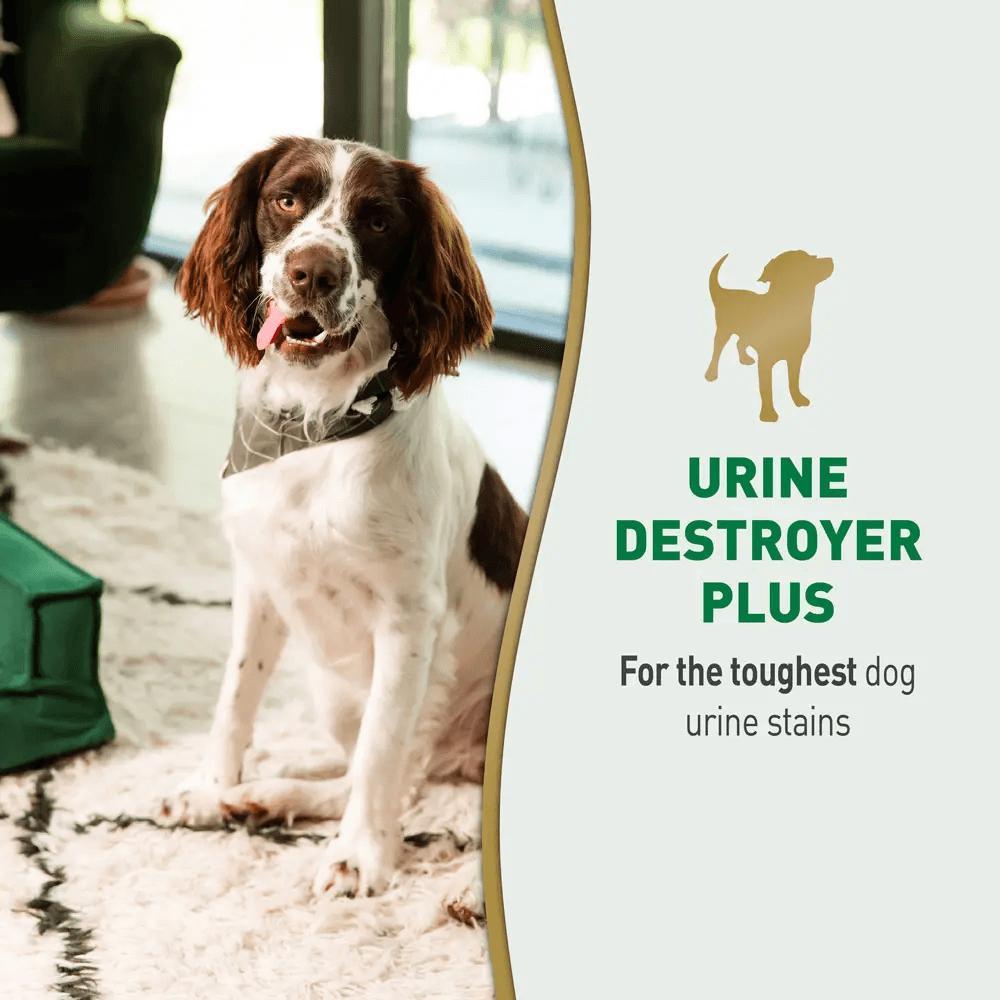 - The advanced bio-enzymatic formula specifically targets the proteins found in dog urine to break down stains at a molecular level