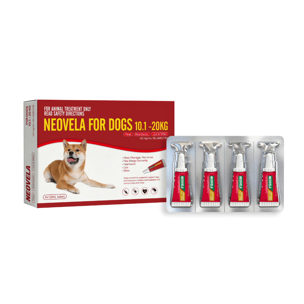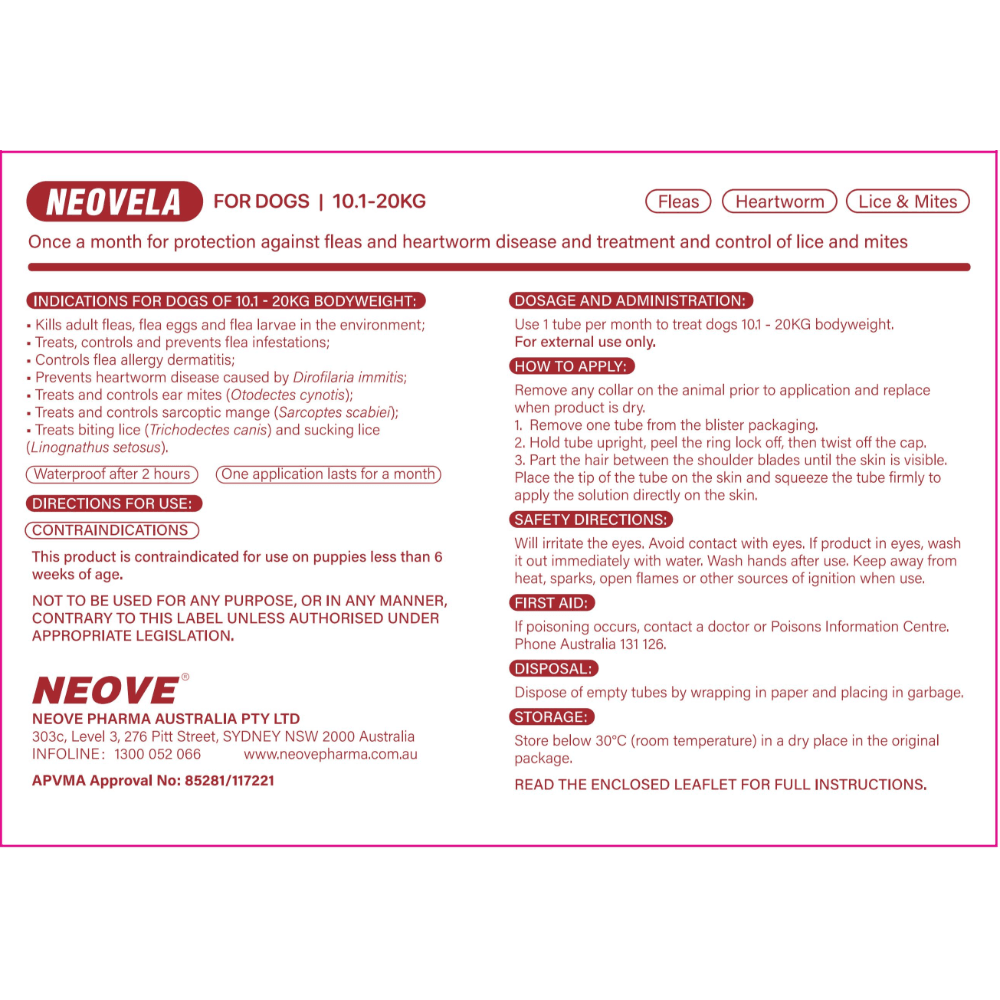 Neovela is a specialised parasite prevention solution tailored for medium breed dogs. This monthly topical treatment effectively combats heartworm, mites, and various flea life stages.
