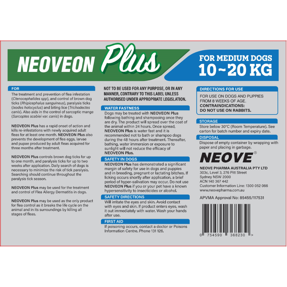 Neoveon Plus Flea & Tick Spot-On For Medium Dogs