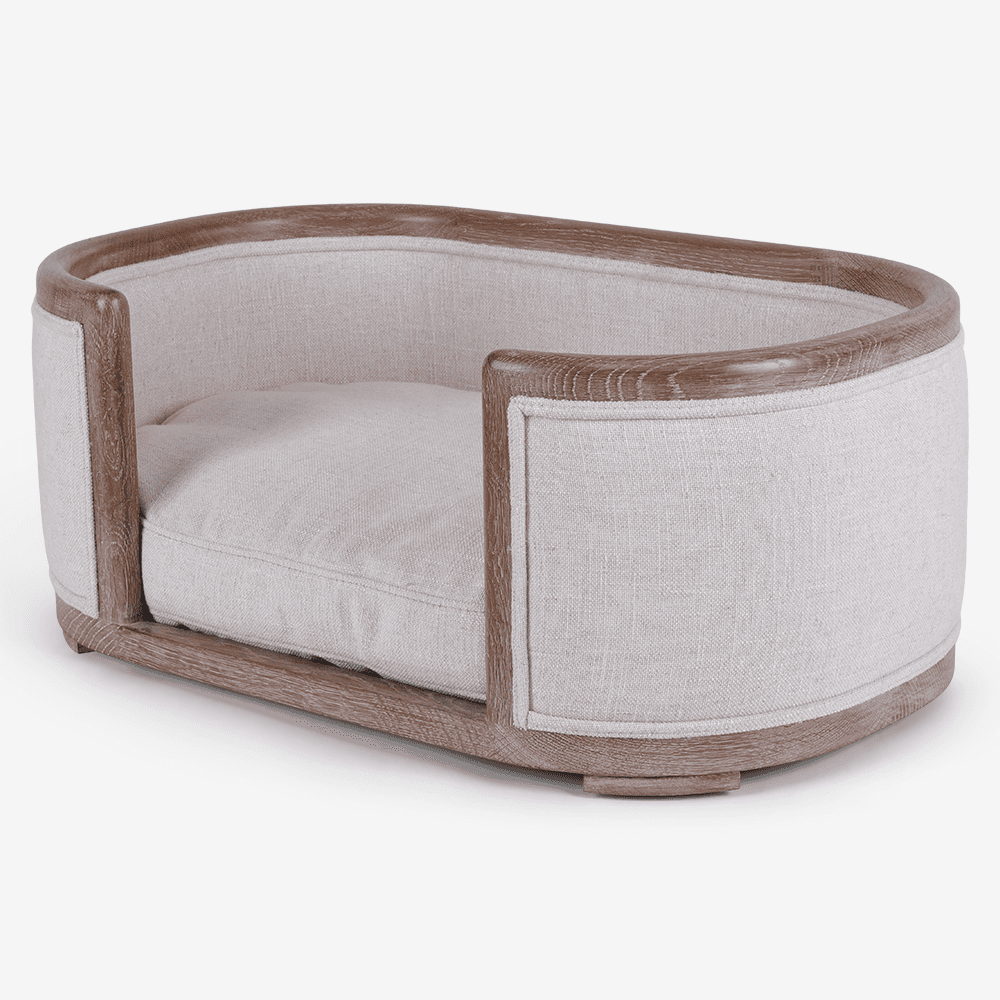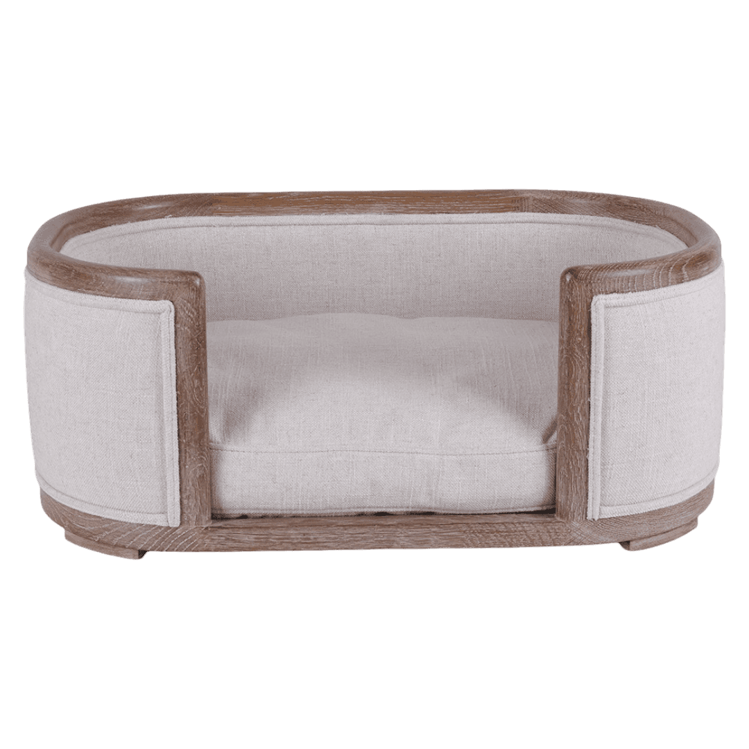 Nujiao Natural Oak Wood Wicker Frame White Cushion Pet Bed For Dogs And Cats