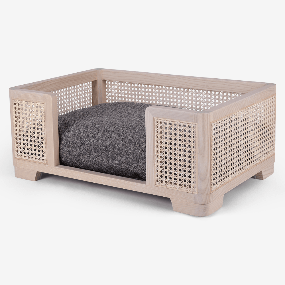 The Nujiao Rectangle Oak Wood Pet Bed in natural offers your pet both luxury and comfort with a Scandinavian-inspired design. Made from durable white ash wood and hexagonal vine, this bed ensures your pet gets the restful sleep they deserve while adding style to your home.