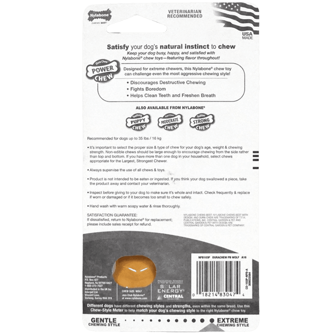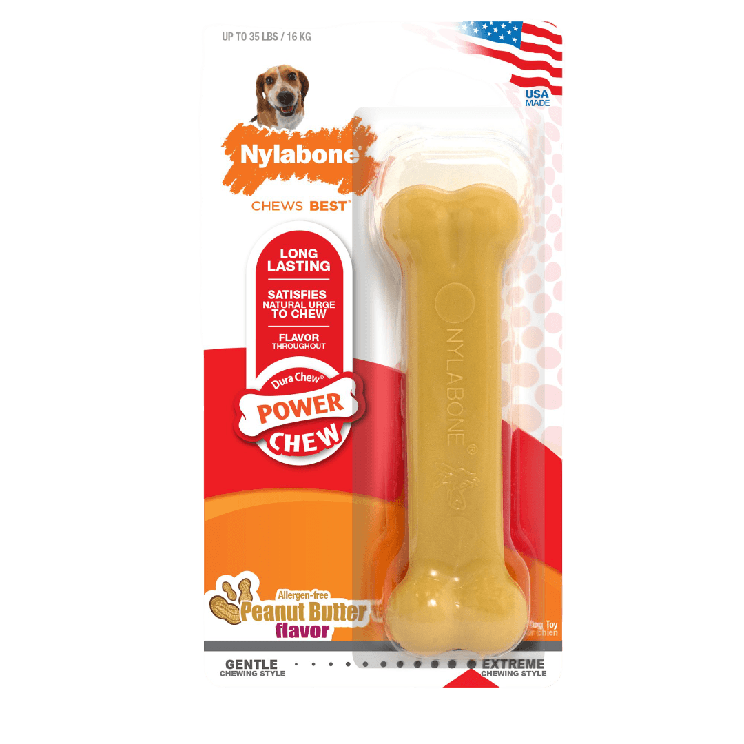Designed for dogs who love to chew, the Nylabone Power Chew Peanut Butter is a flavor-infused chew toy that encourages healthy chewing behavior while addressing common behavioral issues like boredom and anxiety.