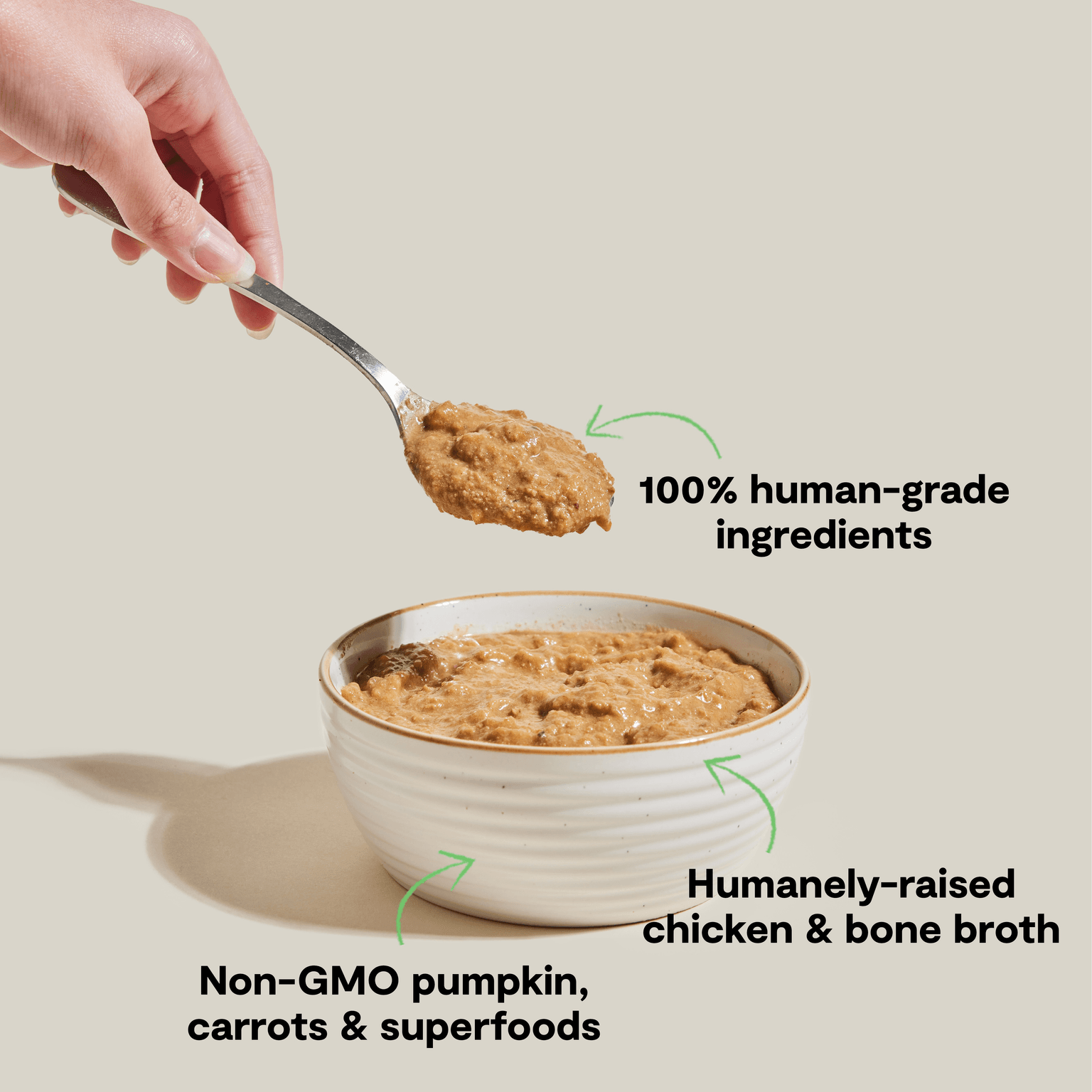 Humanely Raised Chicken, Chicken Bone Broth, Wild Pacific Salmon, Pumpkin, Carrots, Spinach, Red Lentils, Agar Agar, Non-GMO Cranberries, Garbanzo Beans (Chickpeas), Chicory Root, Sunflower Oil, Coconut Oil (preserved with mixed tocopherols), Salt, Vitamin A Supplement, Vitamin D3 Supplement, Vitamin E Supplement, D-calcium Pantothenate, Thiamine Mononitrate, Riboflavin Supplement, Biotin, Folic Acid, Vitamin B12 Supplement, Zinc Amino Acid Chelate, Iron Amino Acid Chelate, Copper Amino Acid Chelate, Manganese Amino Acid Chelate, Sodium Selenite, Dried Kelp, Potassium Chloride, Dandelion Greens, Choline Chloride, Taurine, Turmeric