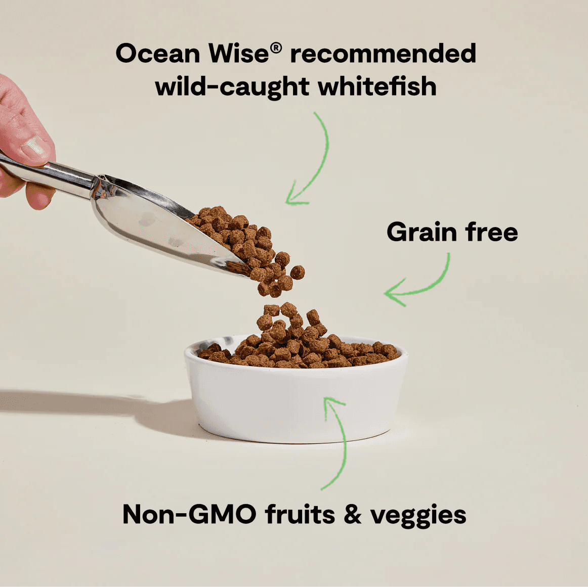 Humanely Raised Turkey, Humanely Raised Chicken, Ocean Whitefish Meal, Russet Potatoes, Garbanzo Beans (Chickpeas), Green Lentils, Field Peas, Coconut Oil (Preserved With Mixed Tocopherols), Ocean Menhaden Fish Meal, Tomato, Apples, Pumpkin, Natural Flavour, Flaxseed, Sun Cured Alfalfa, Carrots, Chicory Root, Salmon Oil, Salt, Potassium Chloride, Choline Chloride, Mixed Tocopherols (A Natural Preservative), Vitamin E Supplement, Calcium Pantothenate, Niacin Supplement, Vitamin A Supplement, Riboflavin Supplement, Vitamin D3 Supplement, Vitamin B12 Supplement, Thiamine Mononitrate, Folic Acid, Zinc Proteinate, Calcium Carbonate, Iron Proteinate, Copper Proteinate, Manganese Proteinate, Selenium, Yeast, Calcium Iodate, Rosemary Extract, Taurine, Cinnamon, Turmeric, Dicalcium Phosphate