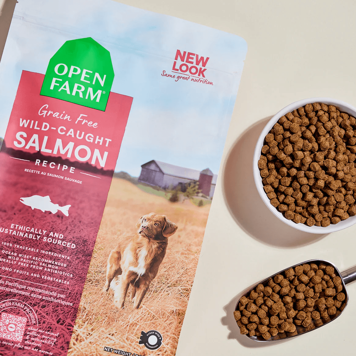 The Open Farm Grain Free Wild Caught Salmon Dry Dog Food nourishes floofs with a high quality grain free recipe made from wild caught salmon as the lead ingredient. Packed with digestible protein and gentle wholefood ingredients, it supports sensitive stomachs and dietary restrictions while delivering clean balanced nutrition without grains, corn, or soy.