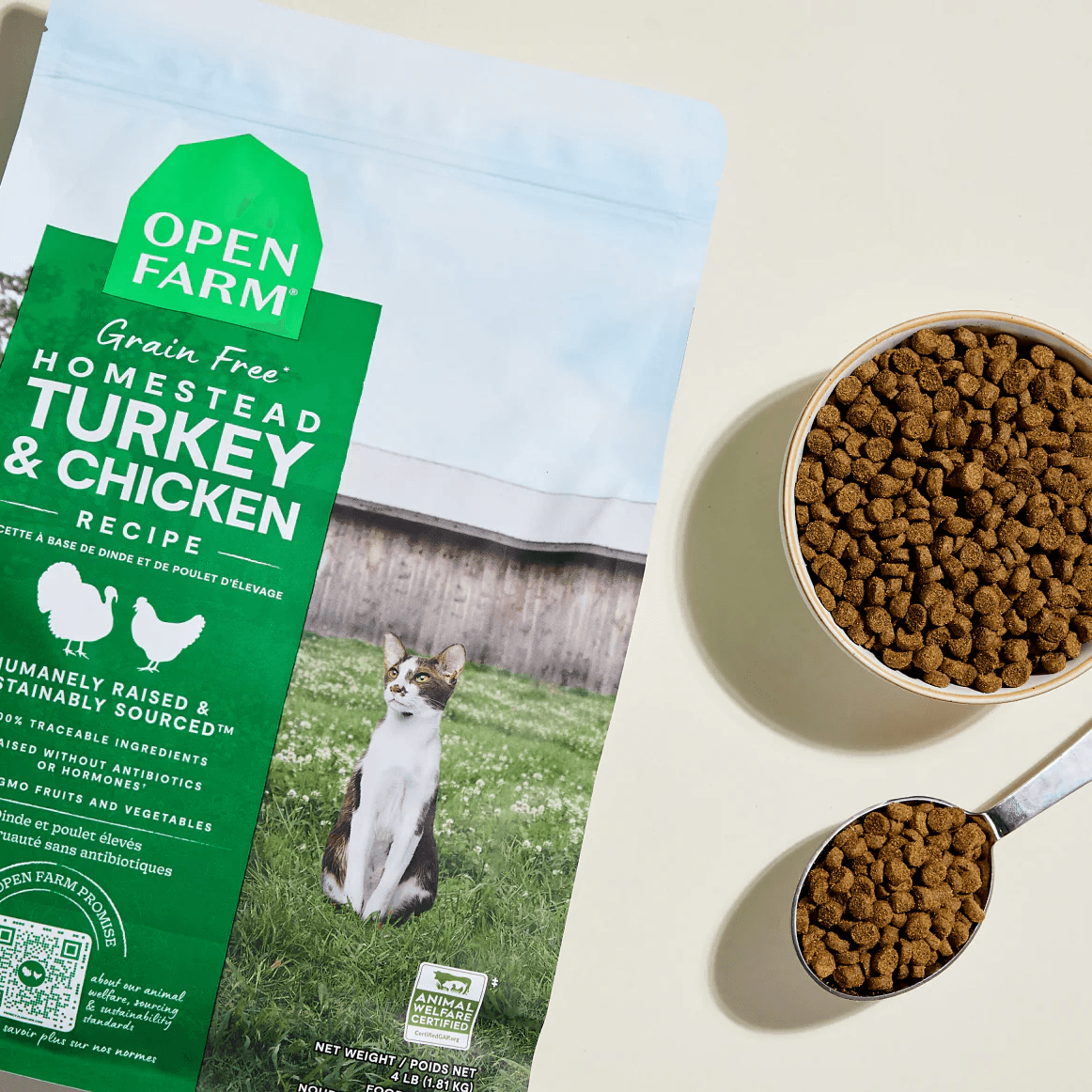 Open Farm Homestead Turkey and Chicken Grain-Free Cat Kibble is a premium dry food thoughtfully crafted to support your cat's health at every life stage. Combining humanely raised turkey and chicken as the first ingredients, this high-protein recipe provides essential amino acids to maintain lean muscle mass and overall vitality. Its grain-free formula includes nutrient-rich, non-GMO fruits and vegetables, such as pumpkin, cranberries, and coconut oil, supporting digestion, immune health, and urinary function.
