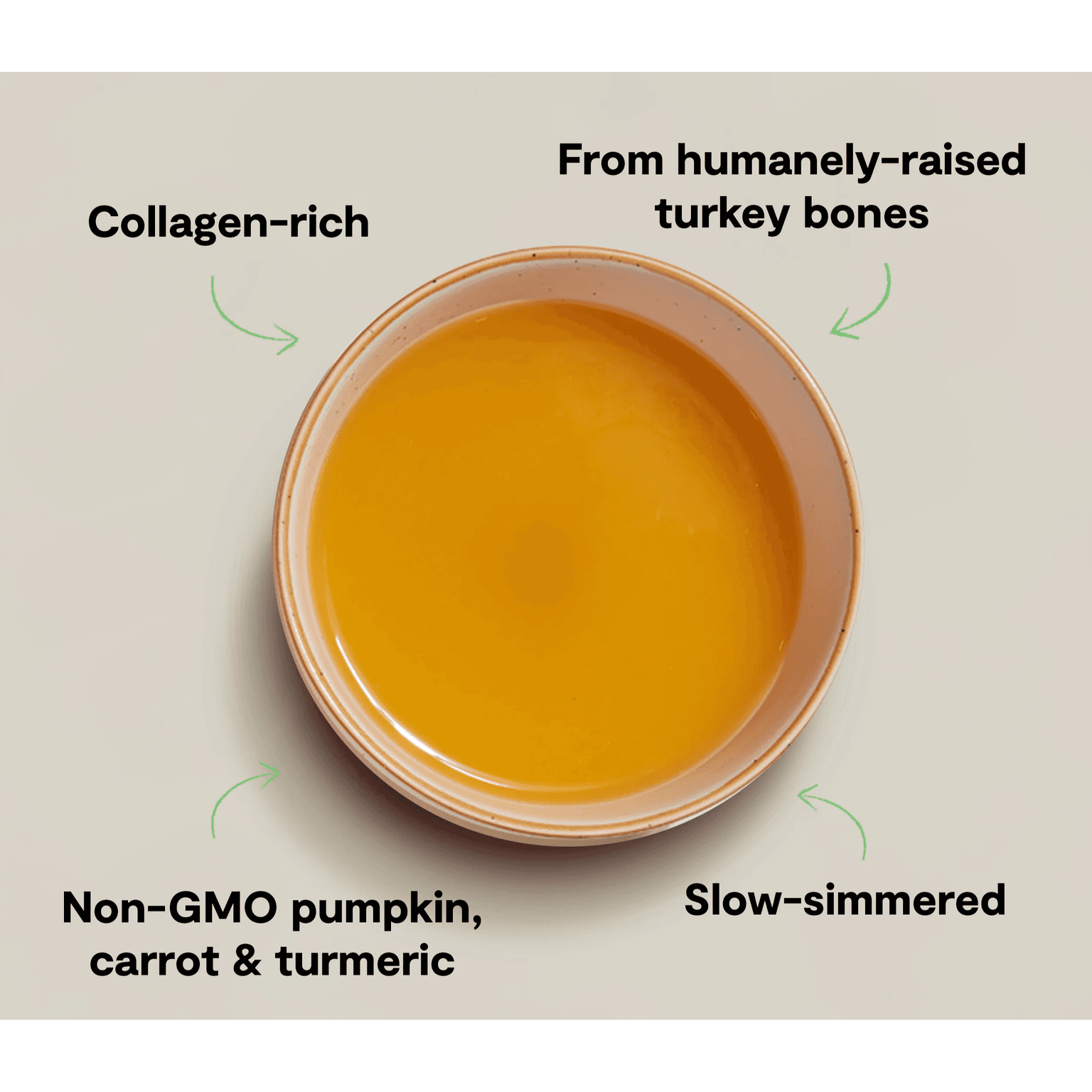 Turkey Bone Broth Concentrate (25 brix), Carrot Puree, Pumpkin Puree, Turmeric, Cinnamon, Water