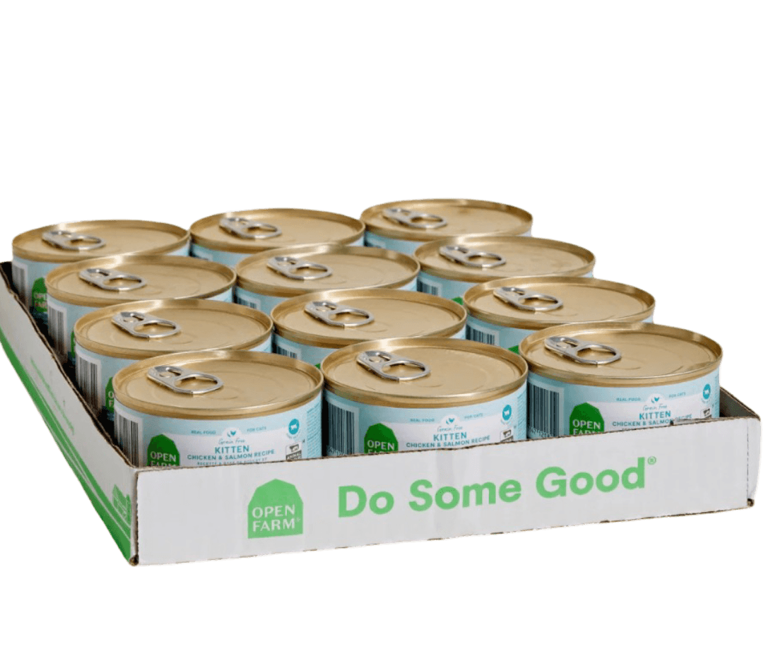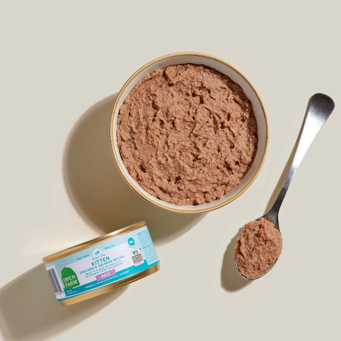 Open Farm Kitten Chicken and Salmon pate Wet Cat Food is a premium, nutrient-rich meal designed specifically for the developmental needs of growing kittens. Made with ethically sourced, free-range chicken and wild-caught salmon, this high-quality recipe provides essential protein and omega-3 fatty acids to support your kitten's healthy growth, muscle development, and cognitive function. Grain-free and gluten-free, it offers a delicious, balanced diet that supports your kitten's overall health and well-being.