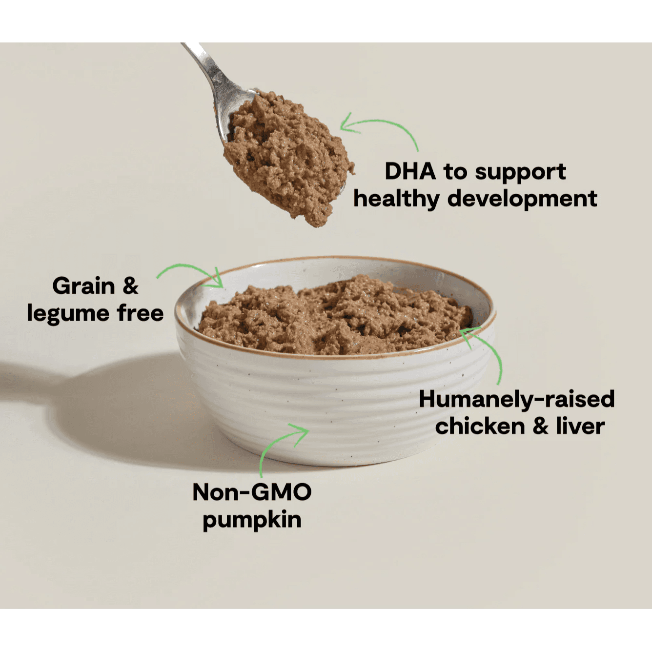 Chicken, Chicken Broth, Salmon, Chicken Liver, Tapioca, Pumpkin, Natural Flavor, Agar Agar, Potassium Chloride, Magnesium Sulfate, Choline Chloride, Dl-Methionine, Salmon Oil, Taurine, Vitamins (Vitamin E Supplement, Vitamin A Supplement, Niacin Supplement, Pantothenic Acid, Riboflavin Supplement, Vitamin D3 Supplement, Thiamine Mononitrate, Vitamin B12 Supplement, Pyridoxine Hydrochloride, Folic Acid), Minerals (Zinc Amino Acid Chelate, Iron Amino Acid Chelate, Copper Sulfate, Manganese Amino Acid Chelate, Sodium Selenite), Salt