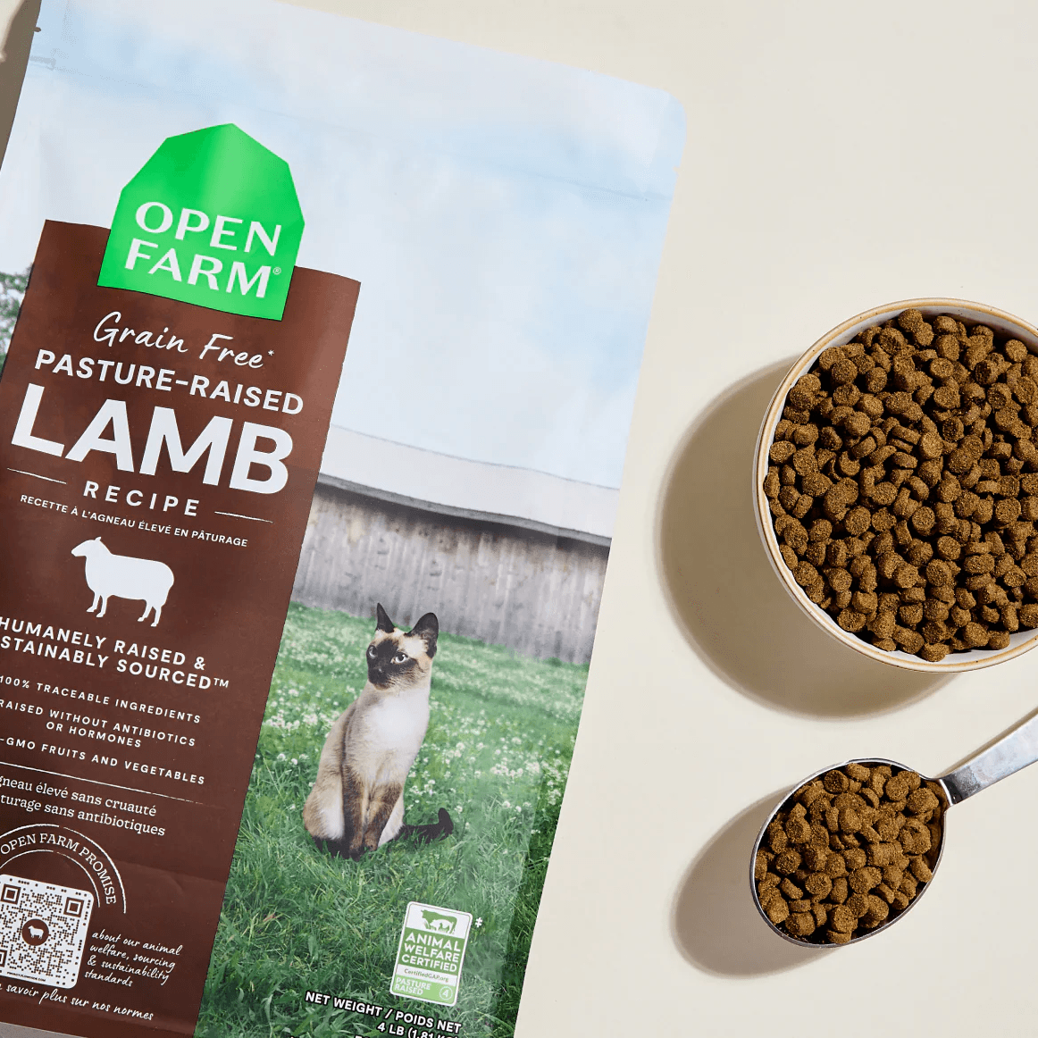 Open Farm Pasture-Raised Lamb Grain-Free Cat Kibble is a high-quality, nutritious option for your feline companion. Crafted with 100% pasture-raised, grass-fed New Zealand lamb as the primary ingredient, this grain-free recipe offers a rich source of protein and essential nutrients. Combined with non-GMO fruits, vegetables, and legumes, it provides a balanced and easily digestible diet suitable for kittens, adults, and senior cats alike.