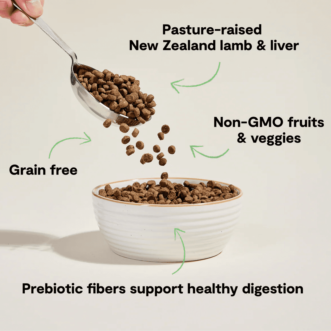 Humanely Raised Lamb, Ocean Whitefish Meal, Herring Meal, Garbanzo Beans (Chickpeas), Red Lentils, Herring Oil (preserved with mixed tocopherols), Coconut Oil (preserved with mixed tocopherols), Green Lentils, Pumpkin, Natural Flavour, Non-GMO Cranberries, Dried Chicory Root Extract, Choline Chloride, Apples, Dandelion Greens, Choline Chloride, Salt, Taurine, Turmeric, Sunflower Oil, Dried Yucca Schidigera Extract, Mixed Tocopherols (a natural preservative), Calcium Carbonate, Zinc Proteinate, Iron Proteinate, Copper Proteinate, Manganese Proteinate, Sodium Selenite, Calcium Iodate, Vitamin E Supplement, Thiamine Mononitrate, Niacin Supplement, D-calcium Pantothenate, Biotin, Vitamin A Acetate, Riboflavin Supplement, Vitamin B12 Supplement, Vitamin D3 Supplement, Folic Acid, Tricalcium Phosphate, Rosemary Extract