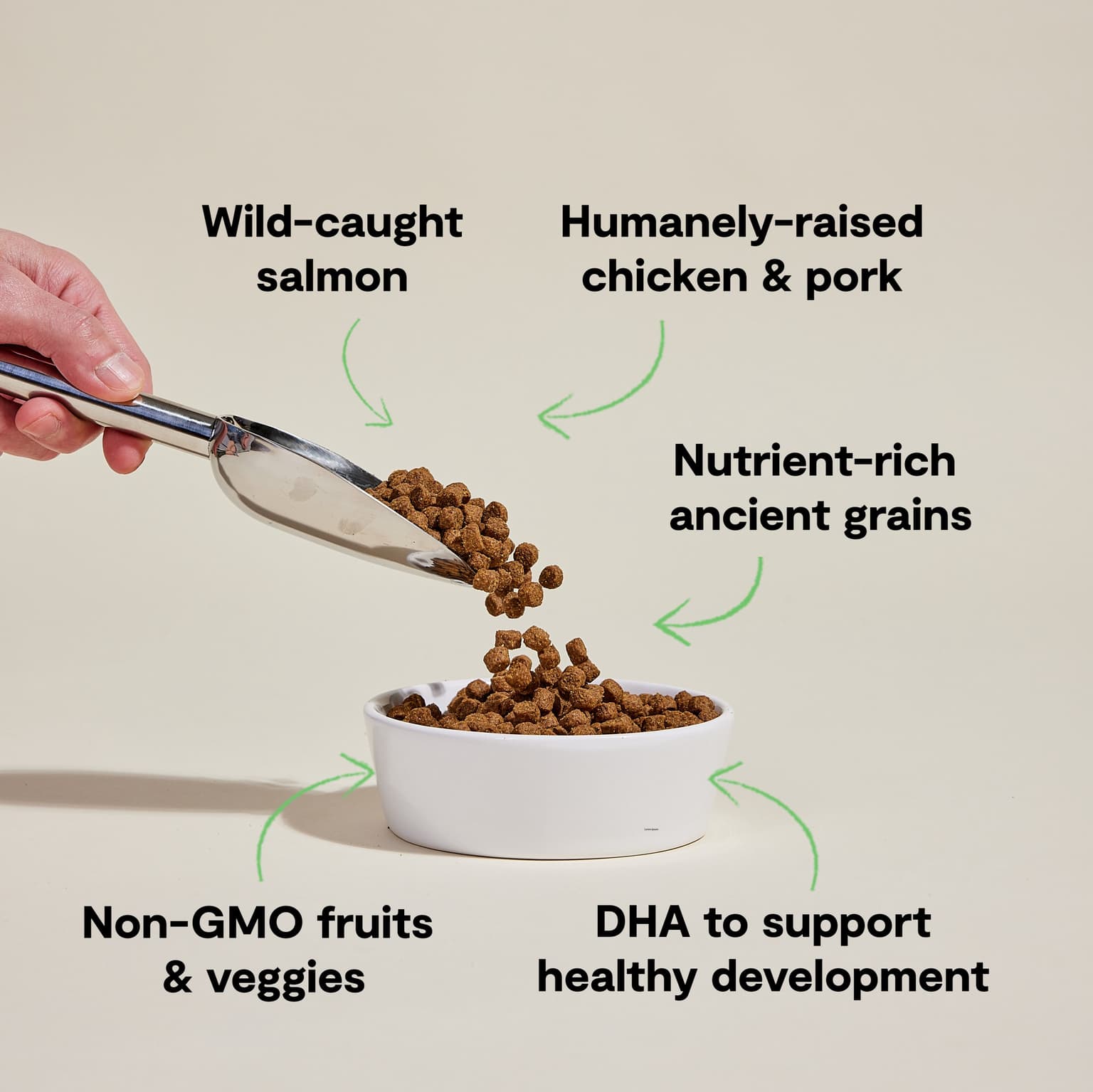 Chicken, Ocean Whitefish Meal, Oats, Salmon, Millet, Brown Rice, Quinoa, Coconut Oil, Herring Meal, Pork, Pumpkin, Natural Flavour, Carrots, Raspberries, Apples, Cranberries, Sunflower Oil, Salmon Oil (Source Of Dha), Potassium Chloride, Salt, Choline Chloride, Dried Chicory Root, Vitamins (Vitamin E Supplement, Vitamin A Supplement, Niacin Supplement, Calcium Pantothenate, Riboflavin Supplement, Vitamin D3 Supplement, Thiamine Mononitrate, Vitamin B12 Supplement, Pyridoxine Hydrochloride, Folic Acid), Minerals (Zinc Proteinate, Iron Proteinate, Copper Proteinate, Manganese Proteinate, Selenium Yeast, Calcium Iodate), Taurine, Mixed Tocopherols (A Preservative), Cinnamon, Turmeric, Rosemary Extract.