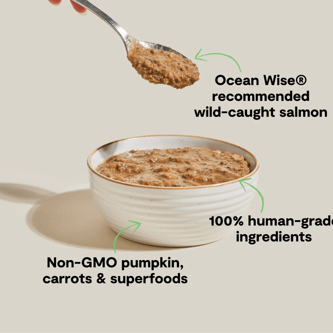 Wild Pacific Salmon, Water Sufficient For Processing, Pumpkin, Carrots, Spinach, Red Lentils, Agar Agar, Non-GMO Cranberries, Garbanzo Beans (Chickpeas), Chicory Root, Sunflower Oil, Coconut Oil (preserved with mixed tocopherols), Potassium Chloride, Salt, Vitamin A Supplement, Vitamin D3 Supplement, Vitamin E Supplement, D-calcium Pantothenate, Thiamine Mononitrate, Riboflavin Supplement, Biotin, Folic Acid, Vitamin B12 Supplement, Zinc Amino Acid Chelate, Iron Amino Acid Chelate, Copper Amino Acid Chelate, Manganese Amino Acid Chelate, Sodium Selenite, Dried Kelp, Dandelion Greens, Choline Chloride, Taurine, Turmeric