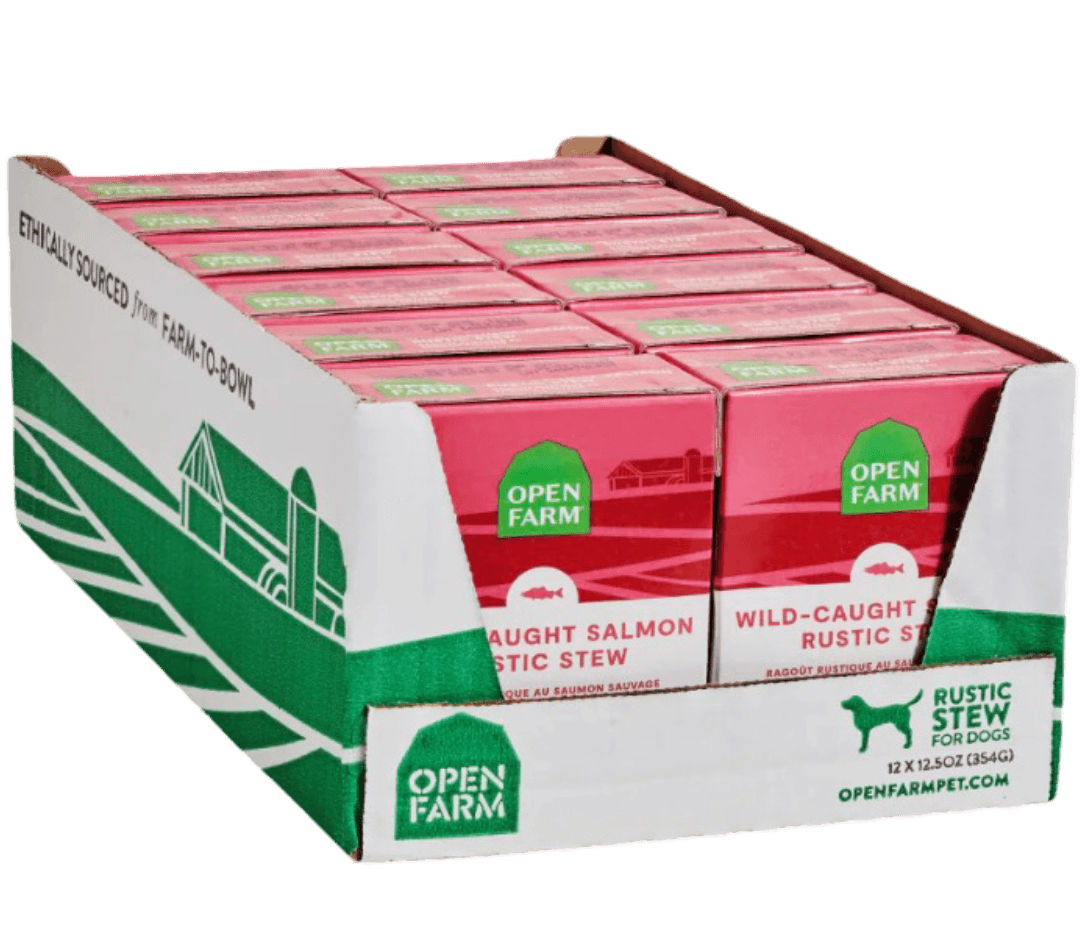 Nourish your dog with Open Farm Wild Caught Salmon Rustic Stew Wet Dog Food. A premium, nutrient-dense meal made from ethically sourced, wild-caught salmon, designed to provide your dog with a delicious and nourishing experience. This grain-free recipe is rich in high-quality protein and omega-3 fatty acids, supporting your dog's overall health, including skin, coat, and joint function. Featuring a wholesome blend of vegetables and superfoods, it offers a balanced and complete meal for dogs of all life stages.