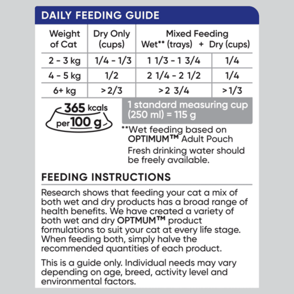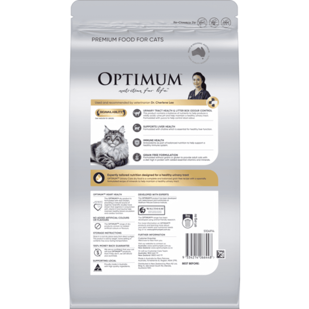 This premium dry food is crafted specifically for feline urinary health and combines delectable chicken taste with an optimal mineral balance to support your cats urinary system. Optimum is devoted to fostering the health and happiness of pets through scientifically crafted nutrition. With expertise in pet wellbeing, Optimums recipes are made with select ingredients to deliver significant benefits and optimal nutrient absorption, ensuring your cat enjoys a vibrant, healthy life.