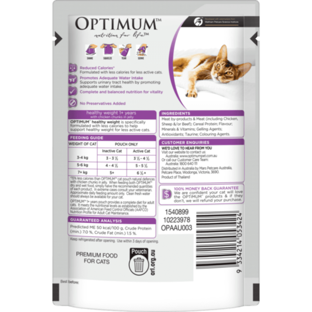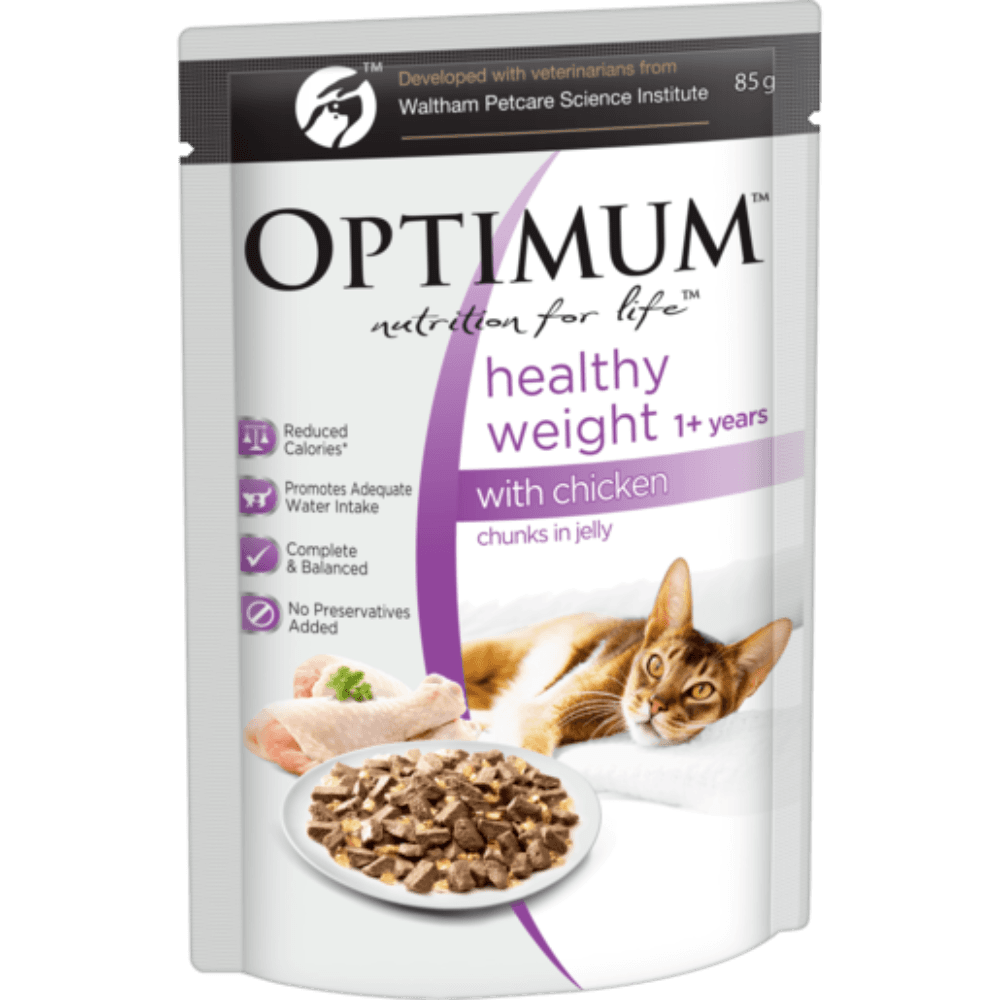 Give your feline friend the nutrition they need with OPTIMUM Healthy Weight Wet Cat Food featuring tender chicken chunks enveloped in a savory jelly. This delicious meal is specially formulated to help cats maintain a healthy weight while delivering a delectable dining experience.