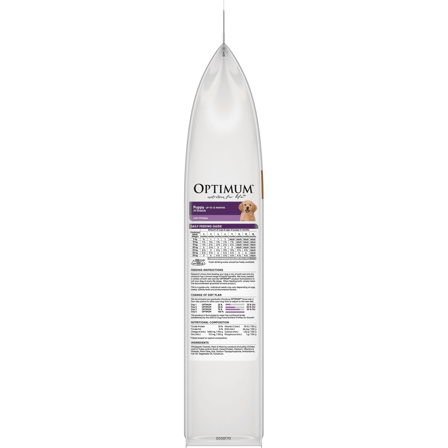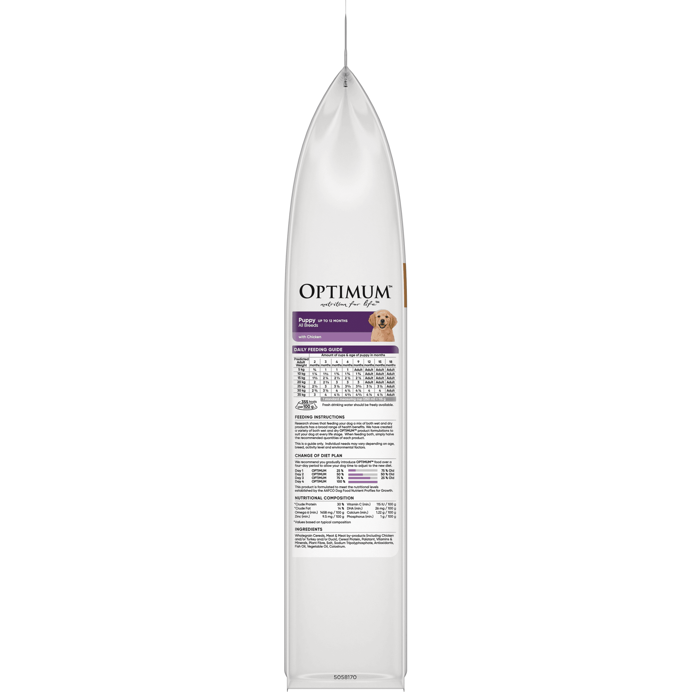 Wholegrain Cereals, Meat & Meat By-Products (Including Chicken And/ Or Turkey And/ Or Duck), Cereal Protein, Palatant, Vitamins & Minerals, Plant Fibre, Salt, Sodium Tripolyphosphate, Antioxidants, Fish Oil, Vegetable Oil, Colostrum