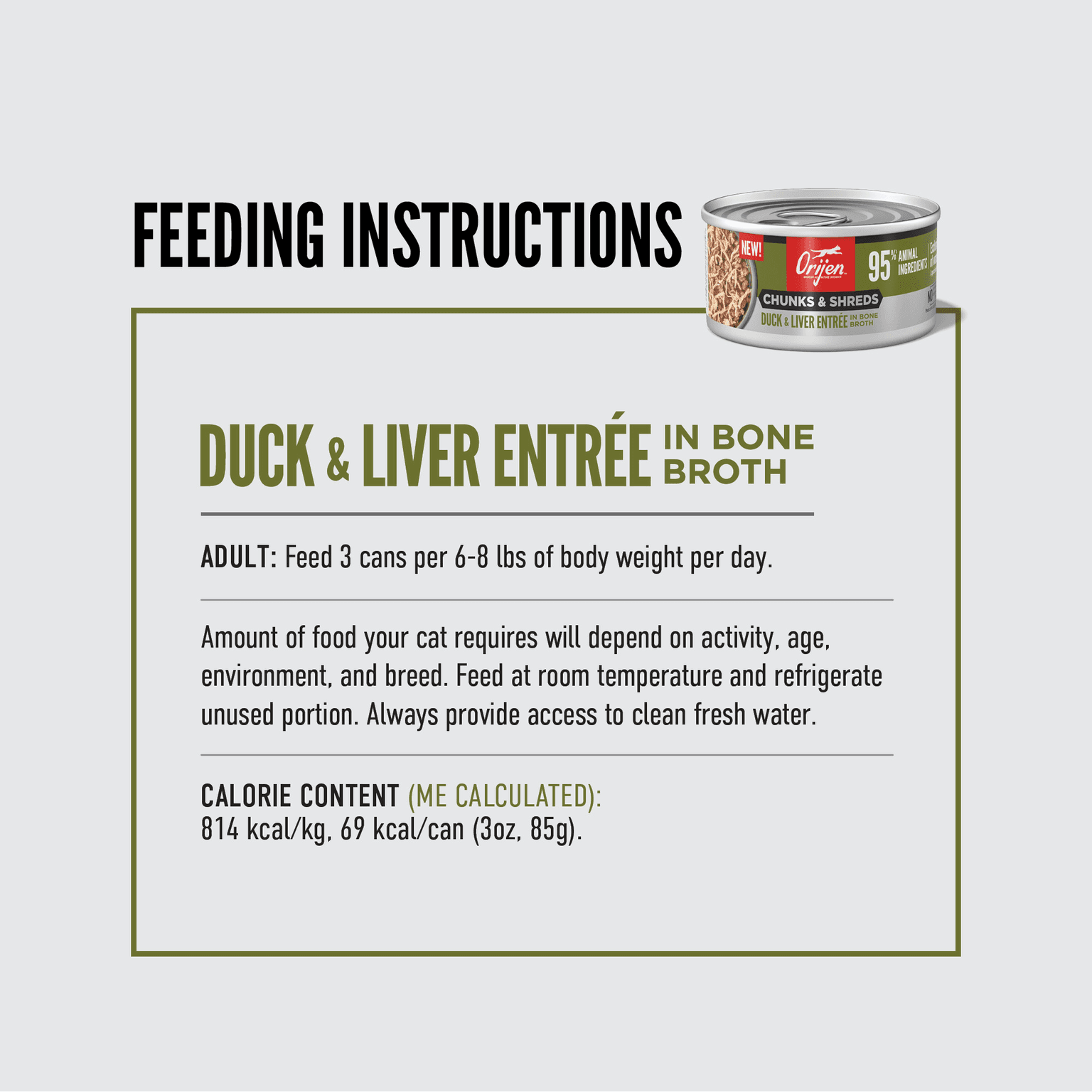 Treat your cat to Orijen Chunks and Shreds Duck and Liver Wet Cat Food, a delicious meal loaded with real poultry shreds in a savoury bone broth. With 95% animal ingredients, it's the rich, meaty diet your little carnivore was born to love.