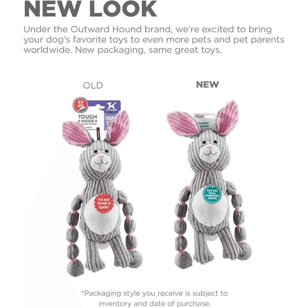 Outward Hound Outward Hound Thunder Tuggerz Bunny Plush Dog Toy Grey