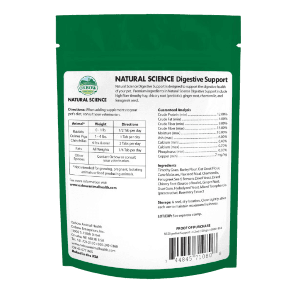 Timothy Grass, Barley Flour, Oat Groat Flour, Cane Molasses, Flax Seed Meal, Chamomile, Fenugreek Seed, Brewers Dried Yeast, Dried Chicory Root (Source of Inulin), Ginger Root, Guar Gum, Hydrolyzed Yeast, Mixed Tocopherols (preservative), Rosemary Extract.