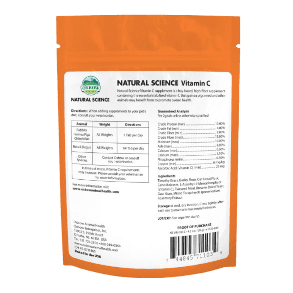 Timothy Grass, Barley Flour, Oat Groat Flour, Cane Molasses, L-Ascorbyl-2-Monophosphate (Vitamin C), Flax Seed Meal, Brewers Dried Yeast, Guar Gum, Mixed Tocopherols (preservative), Rosemary Extract.