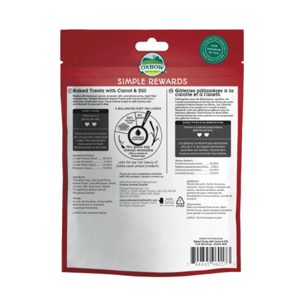 Timothy Grass, Oat Groat Flour, Barley Flour, Cane Molasses, Dried Carrots, Dill, Guar Gum, Mixed Tocopherols (preservative), Rosemary Extract.