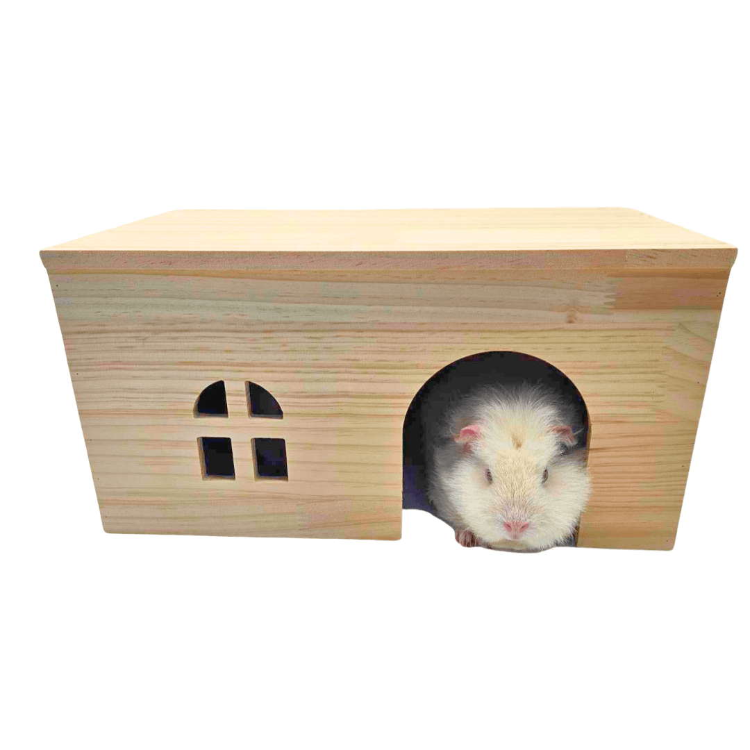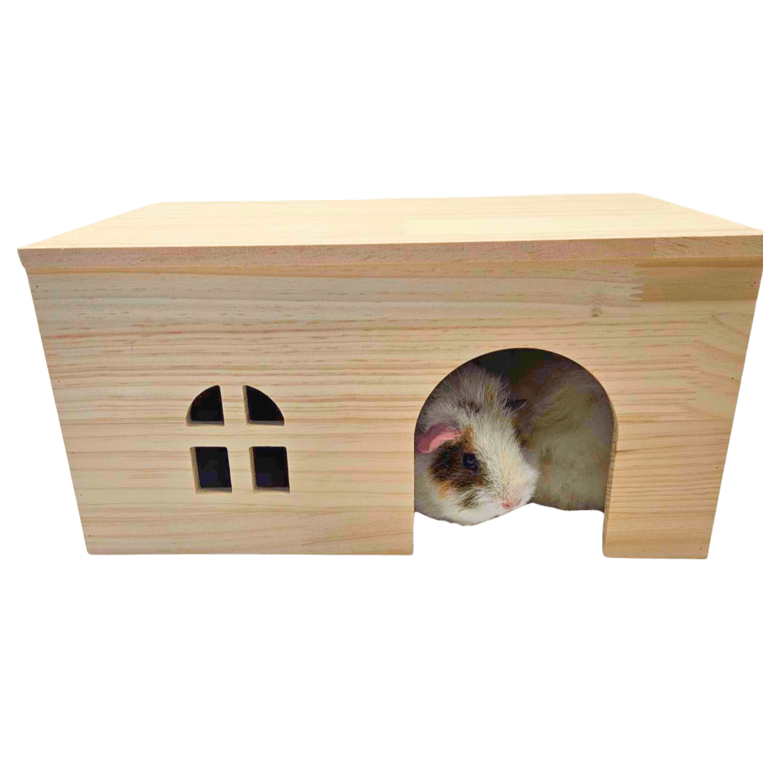The Cavy Condo Guinea Pig Hut is a natural, solid-wood hideout providing a safe and secure woodland retreat for your small pet. Crafted from quality timber, this hidey gives your pet a cosy space to rest and feel secure in their environment.