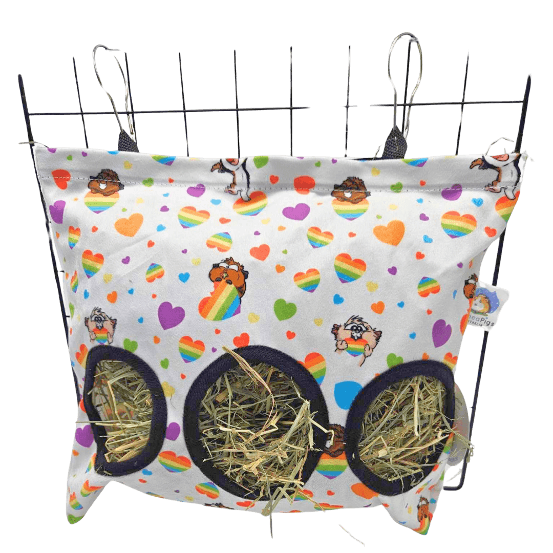 Ozzy Cages Hay Sack Rainbow Hearts Guinea Pig Hay Feeder