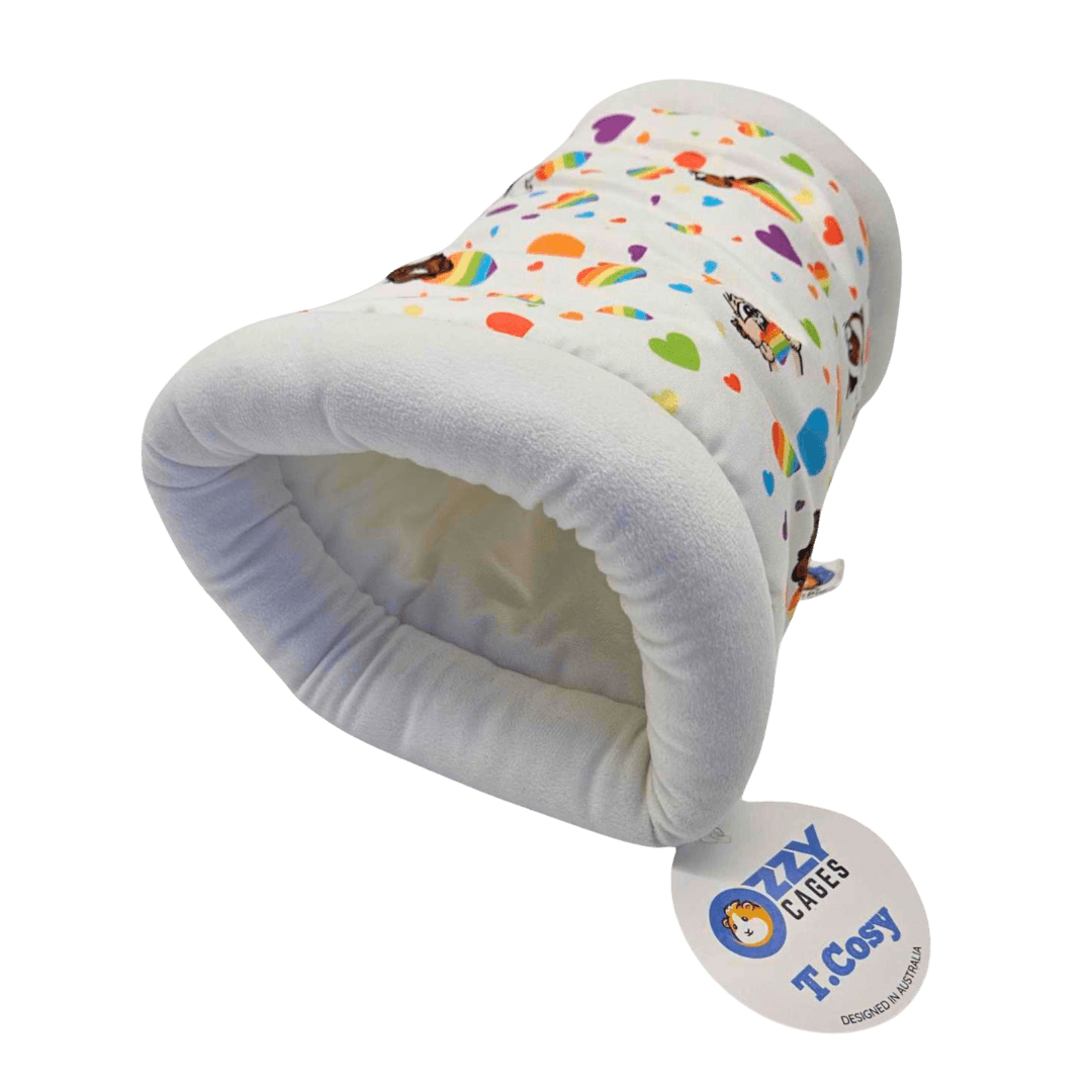 Ozzy Cages T Cosy Tunnel Rainbow Hearts Guinea Pig Soft Toy