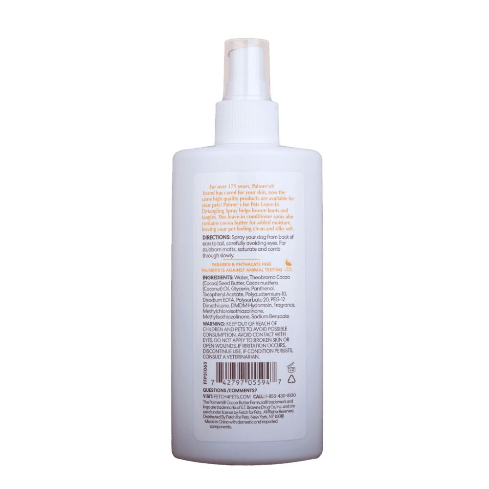 Keep your pet's coat smooth and tangle-free with Palmers For Pets. Made with ethically sourced cocoa butter and natural ingredients, this detangling spray nourishes while it conditions, leaving a healthy shine.