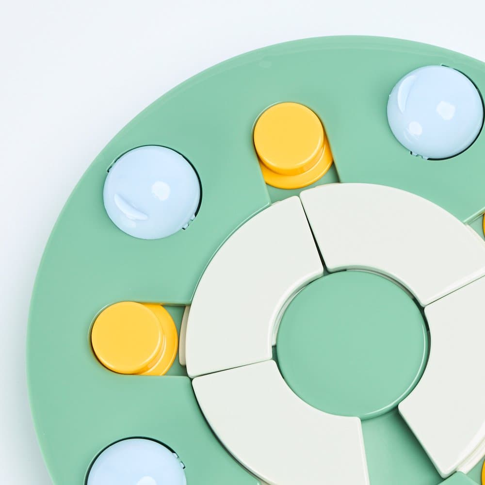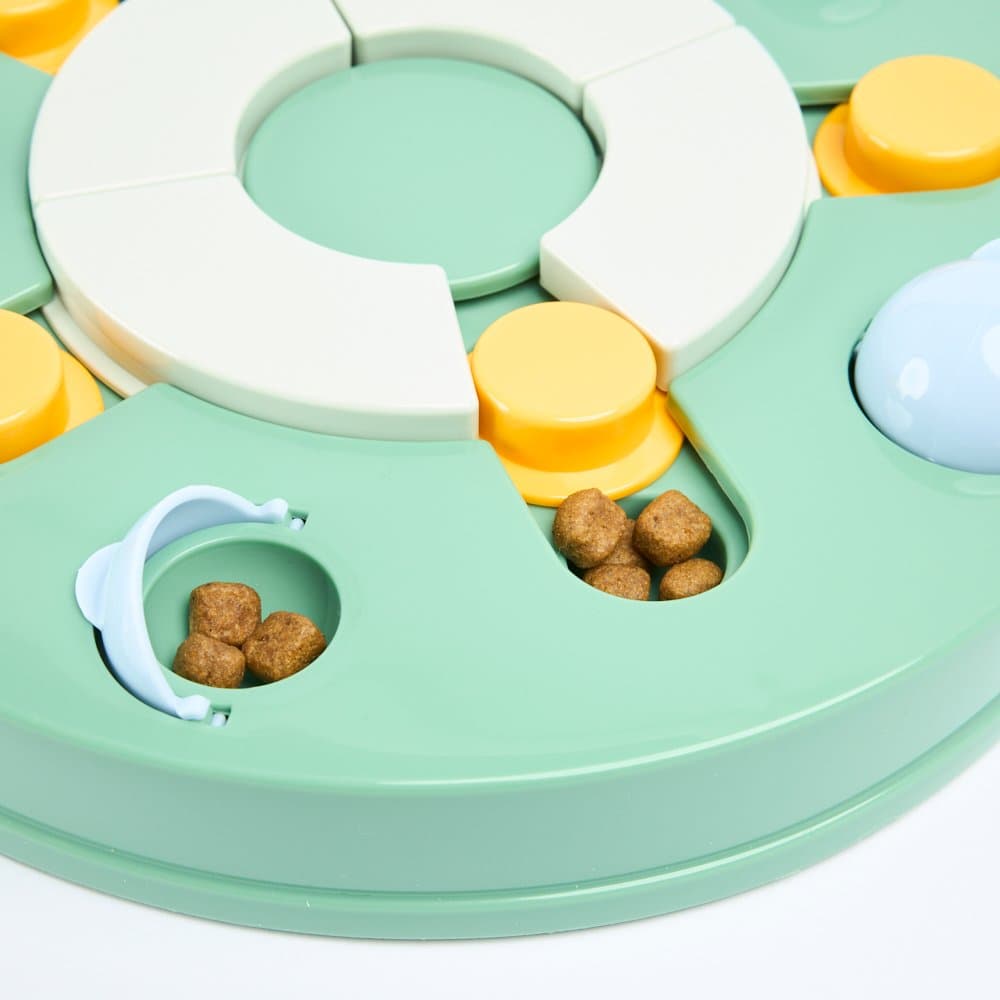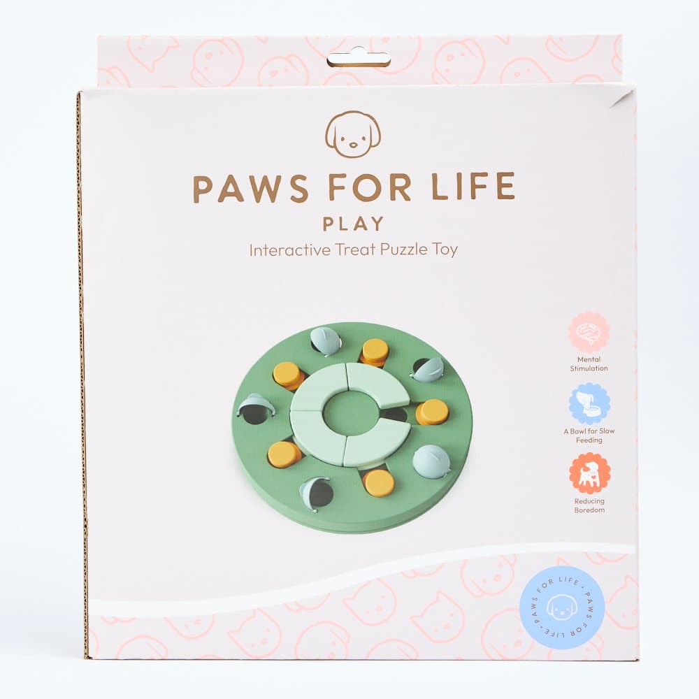 Challenge your clever canine with the Paws For Life 3 In 1 Interactive Puzzle Activity Dog Toy Green. This brain-boosting toy features three different games to turn treat time into an exciting and rewarding puzzle.